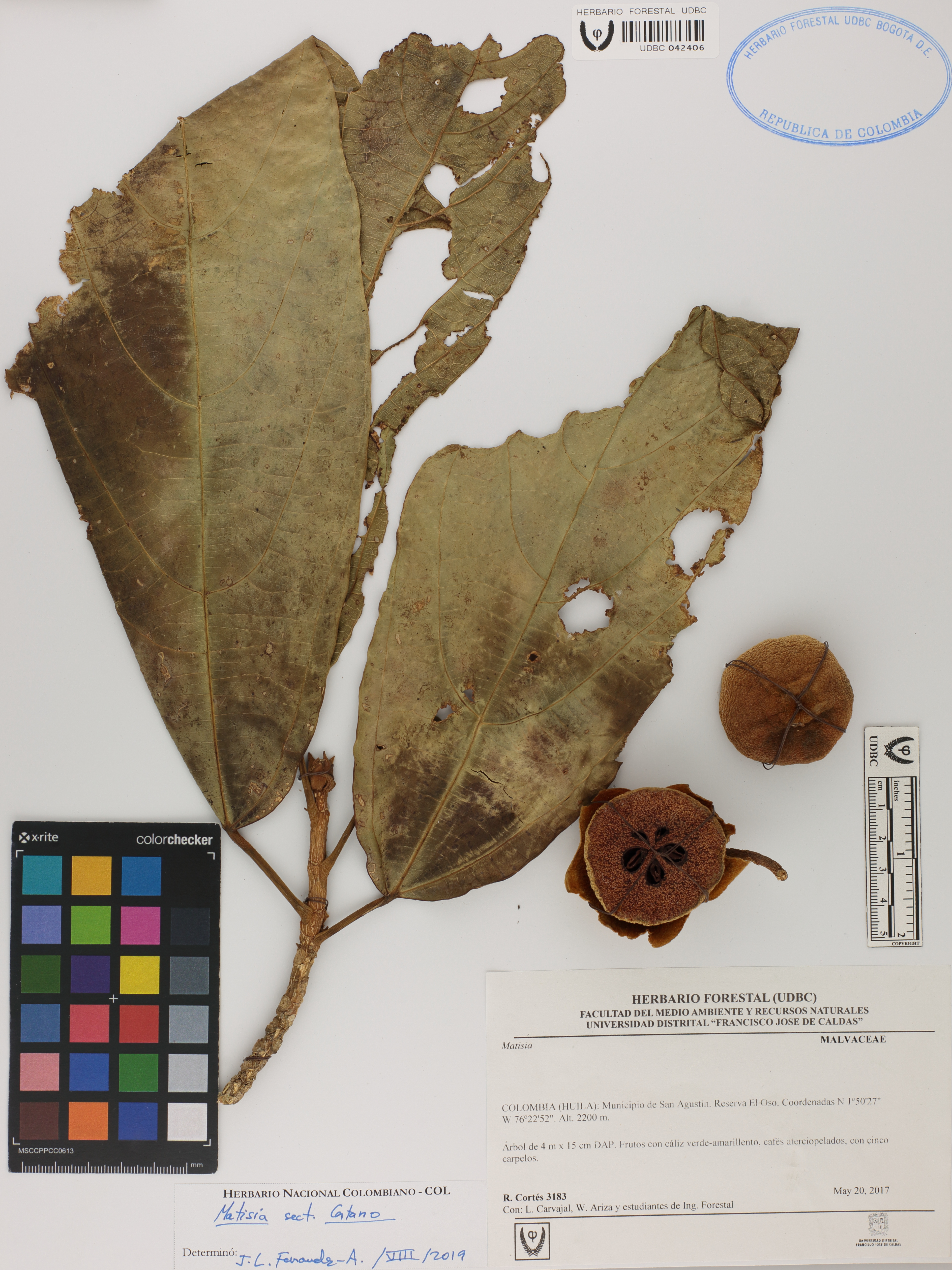 Fotografía del ejemplar Cortés, R. 3183, determinado como Matisia castano en el año 2019
