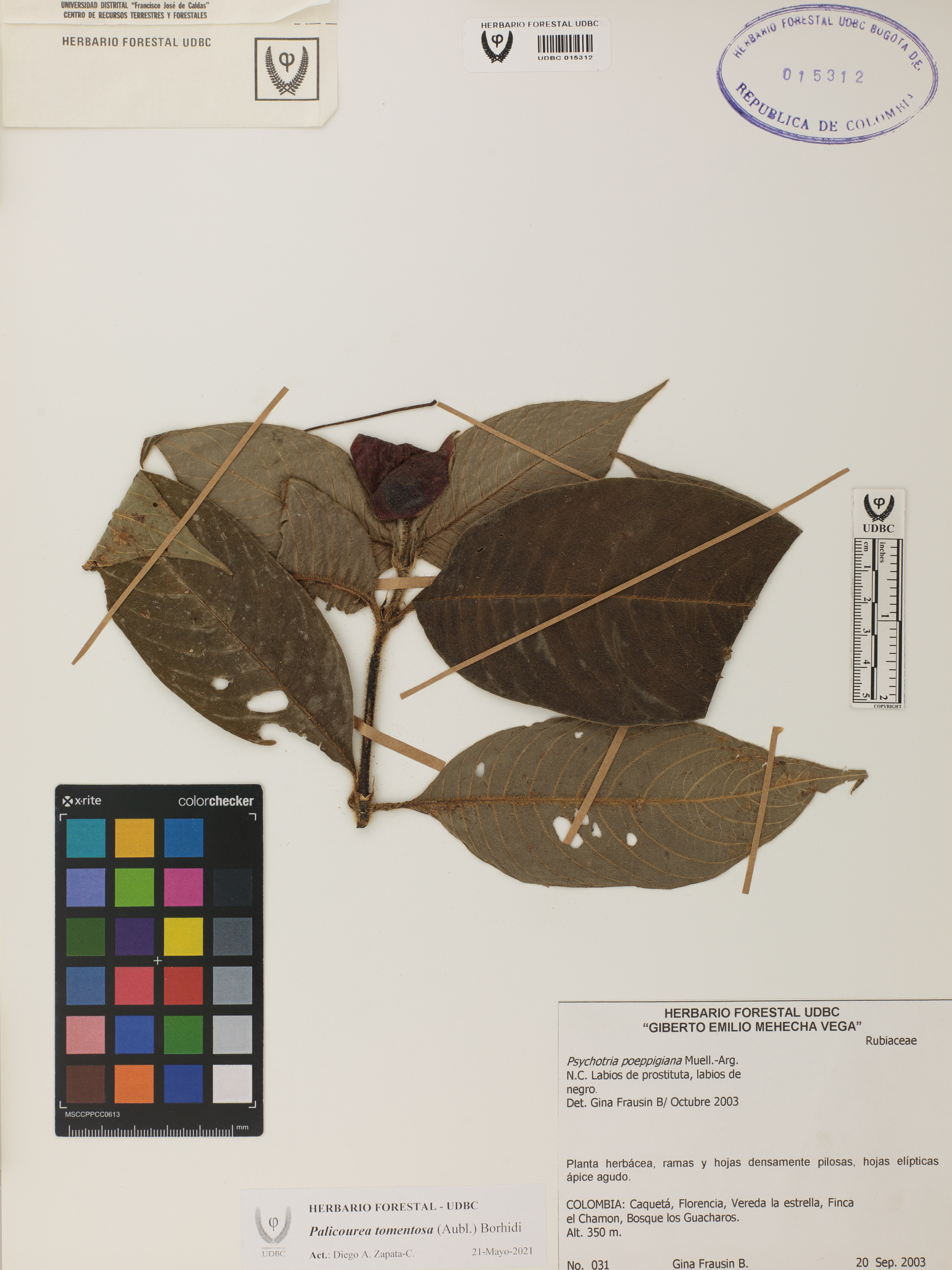 | dc.description | Fotografía del ejemplar Frausin, G. 31, determinado como Palicourea tomentosa en el año 2003 | |