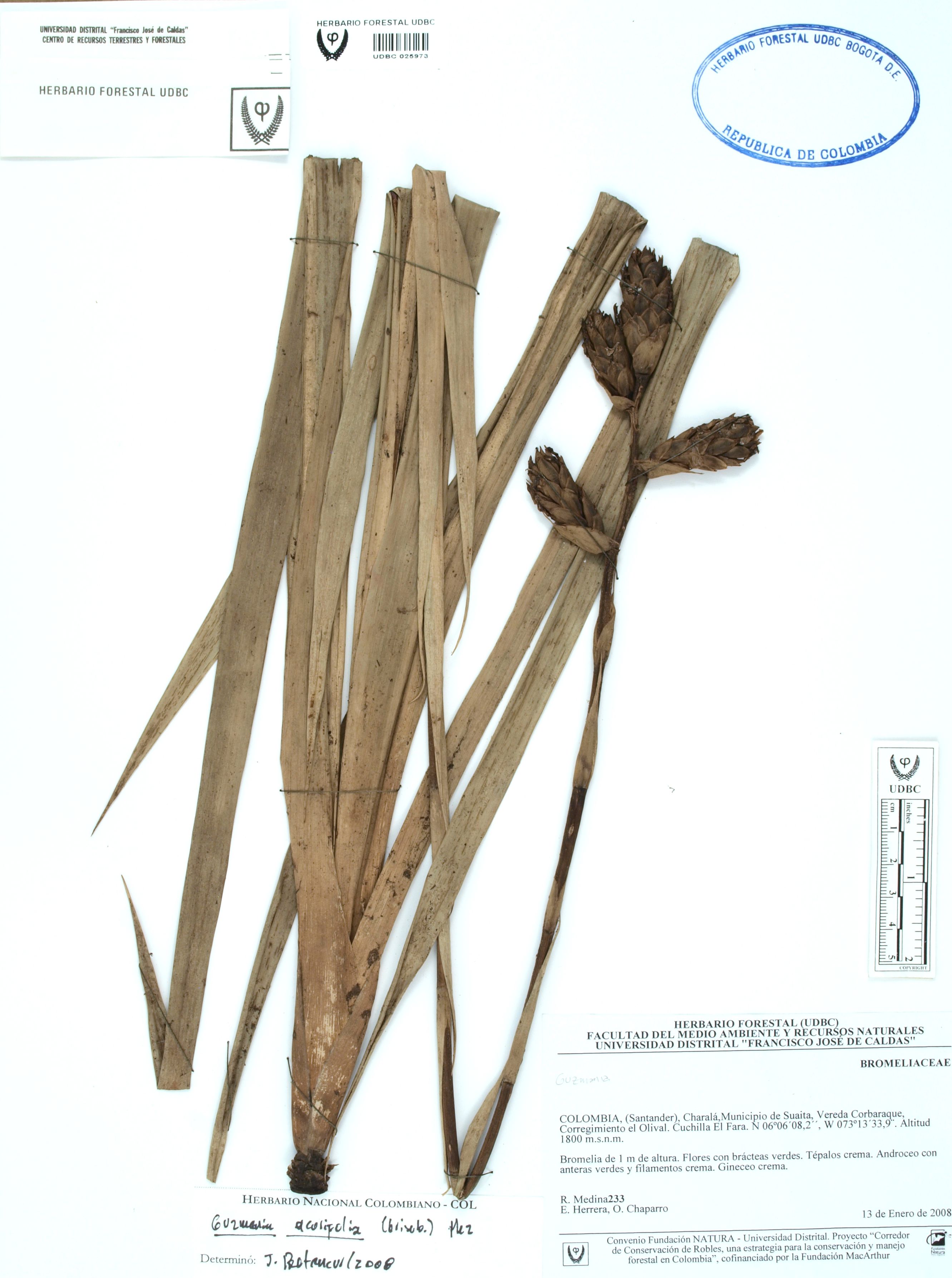 | dc.description | Fotografía del ejemplar Medina, R. 233, determinado como Guzmania acorifolia en el año 2008 | |