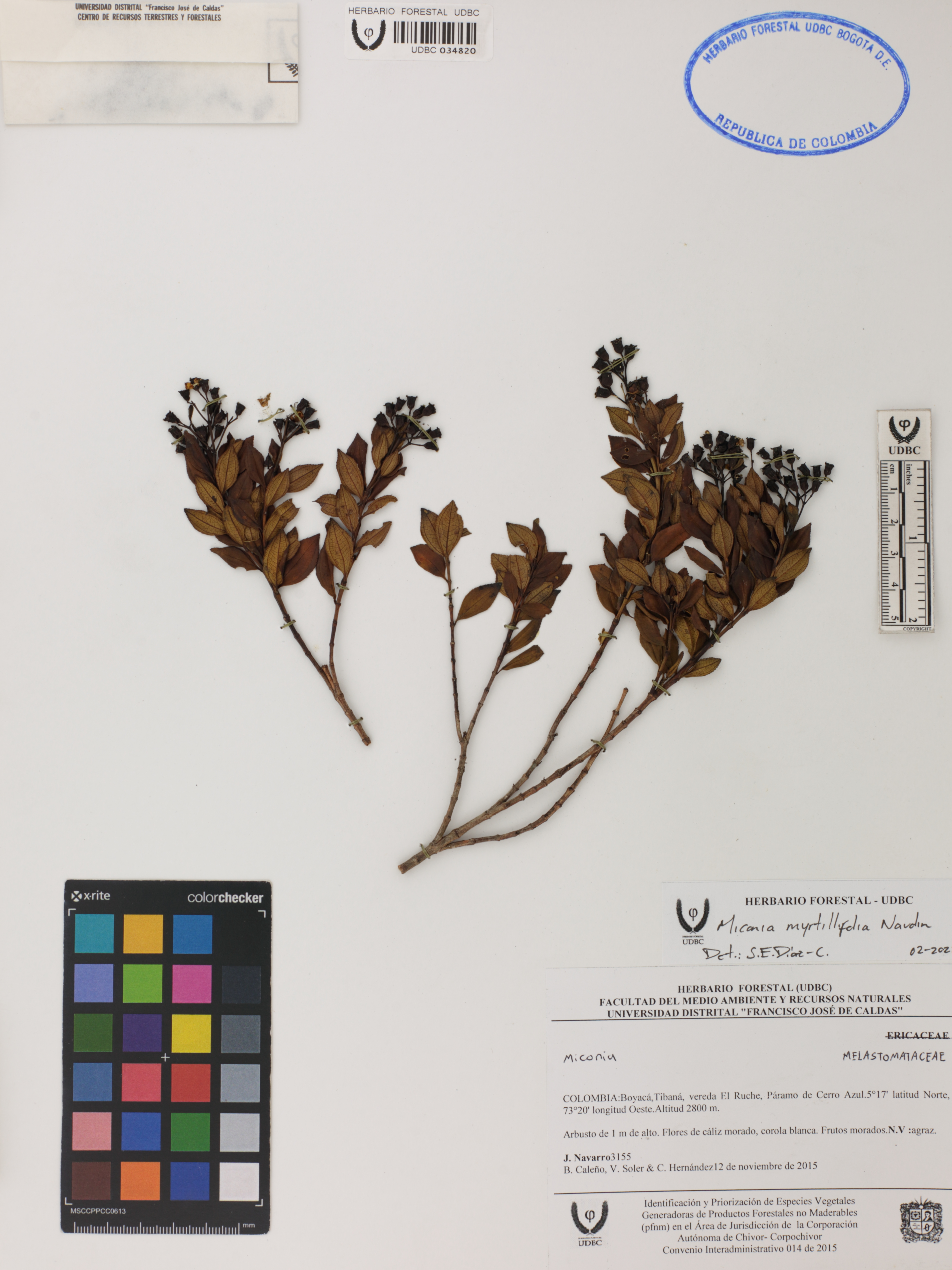 Fotografía del ejemplar Navarro, J. 3155, determinado como Miconia myrtillifolia en el año 2022