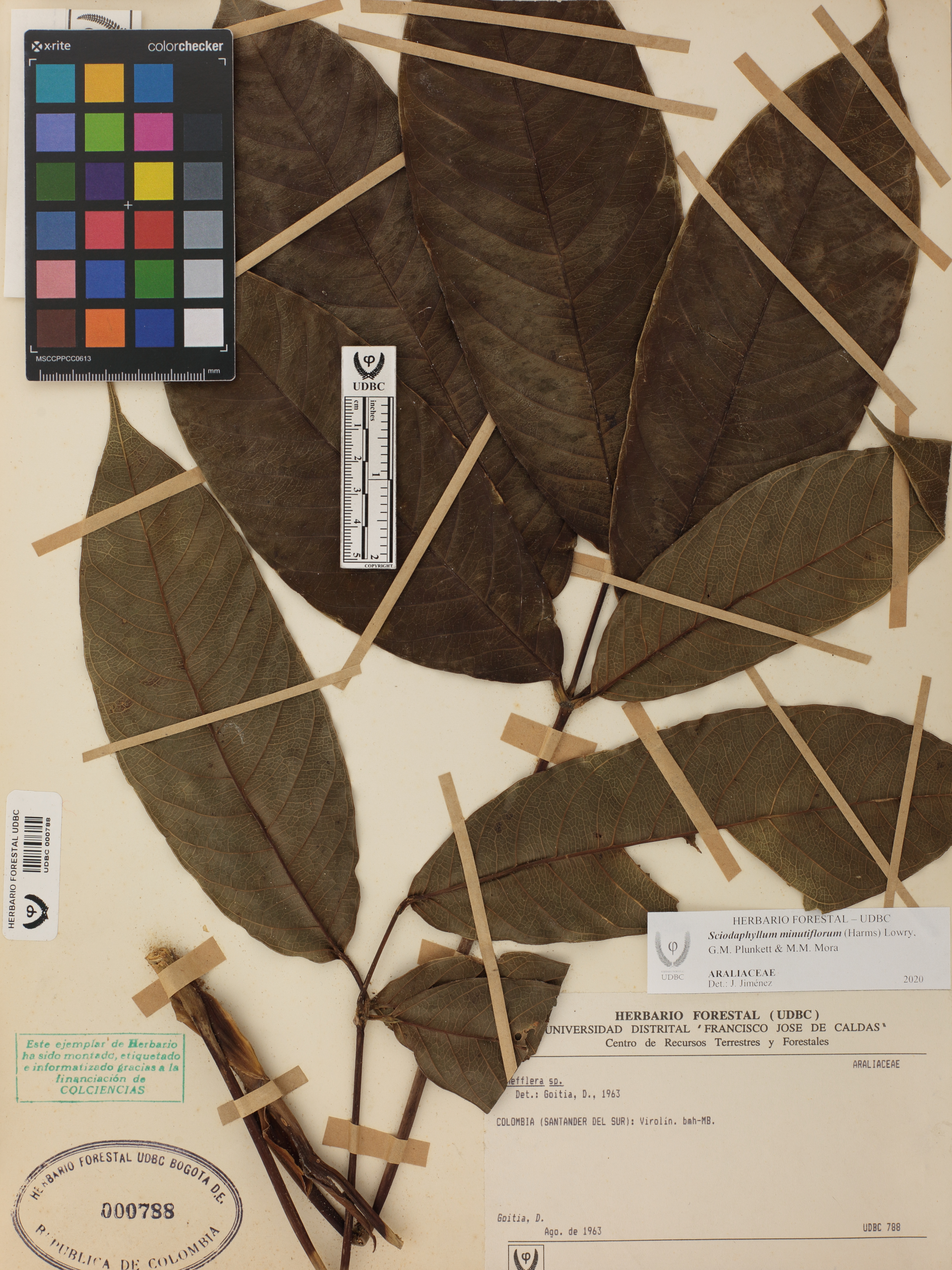Fotografía del ejemplar Goitia, D., determinado como Sciodaphyllum minutiflorum en el año 2020