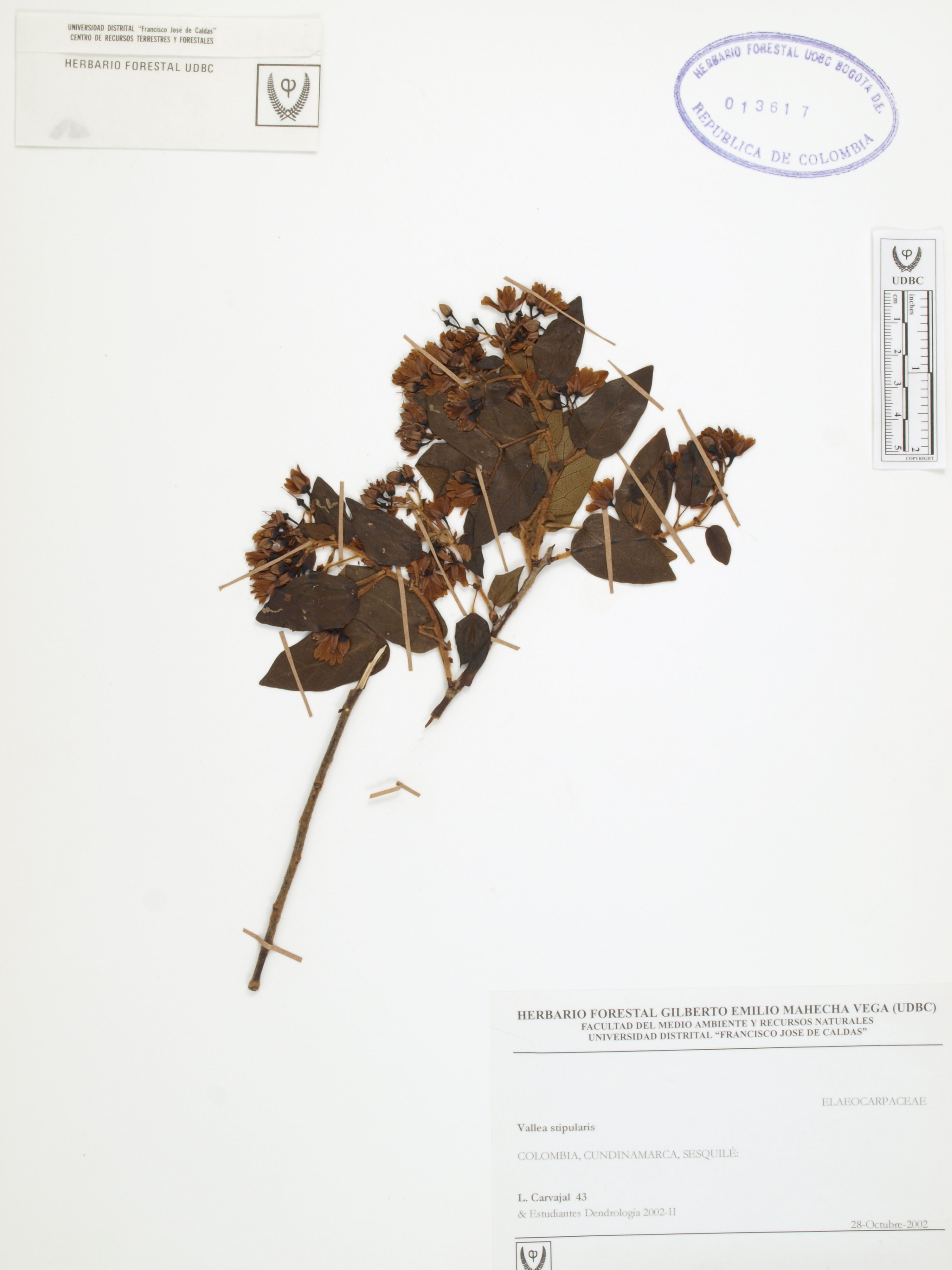 Fotografía del ejemplar Carvajal, L. 43, determinado como Vallea stipularis