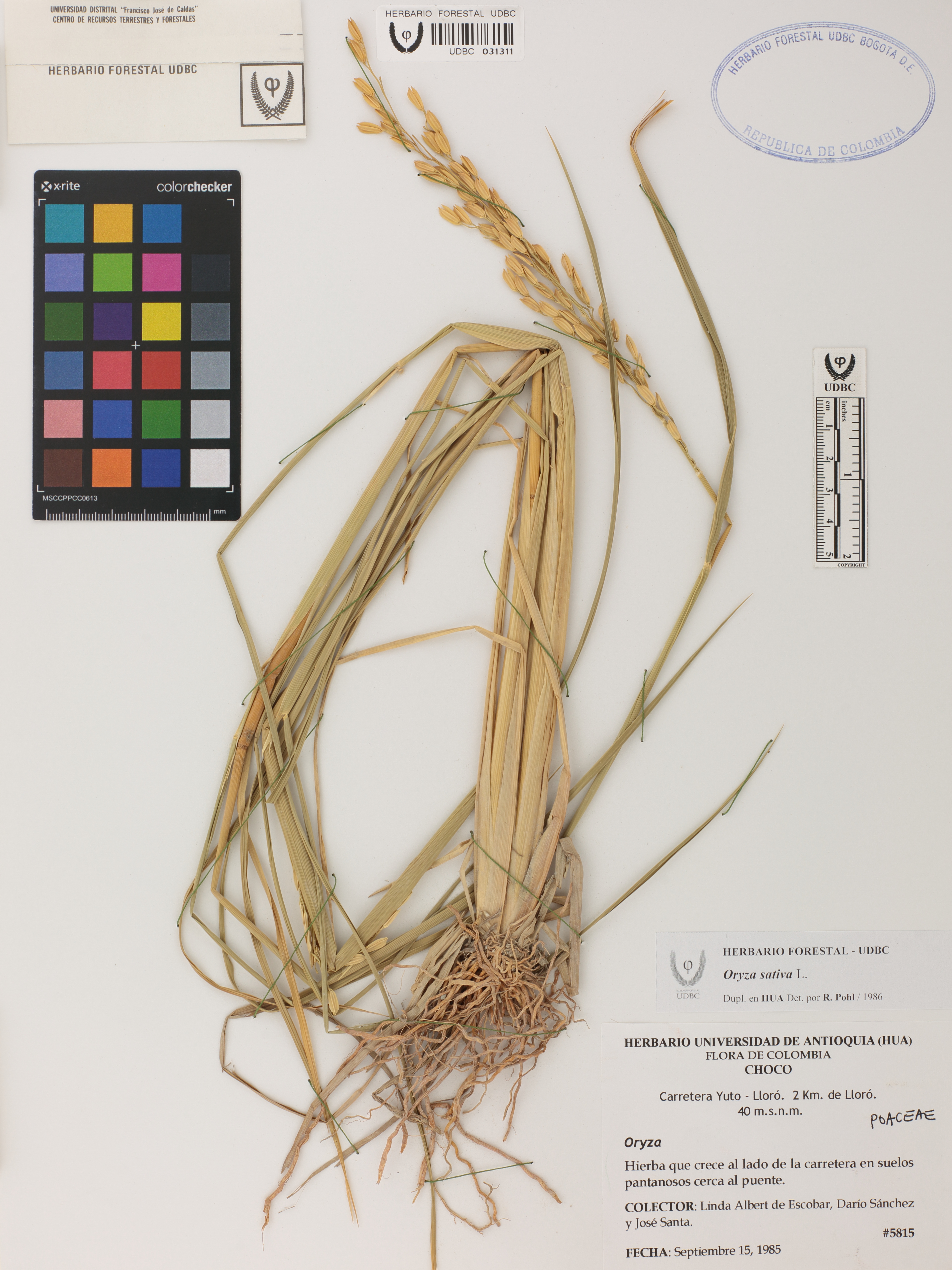 Fotografía del ejemplar Albert de E., L. 5815, determinado como Oryza sativa en el año 1986