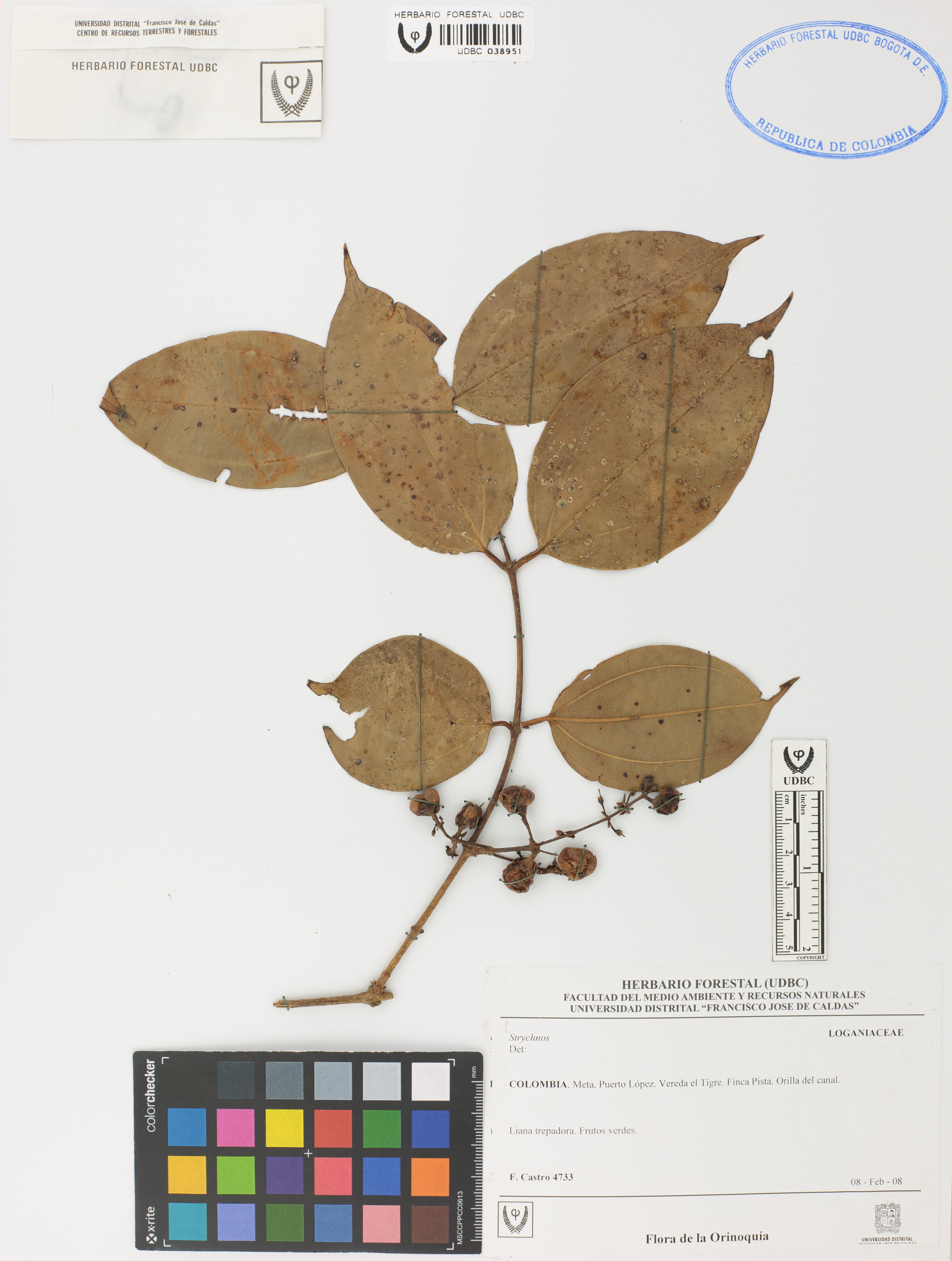 Fotografía del ejemplar Castro, F. 4733, determinado como Strychnos sp.