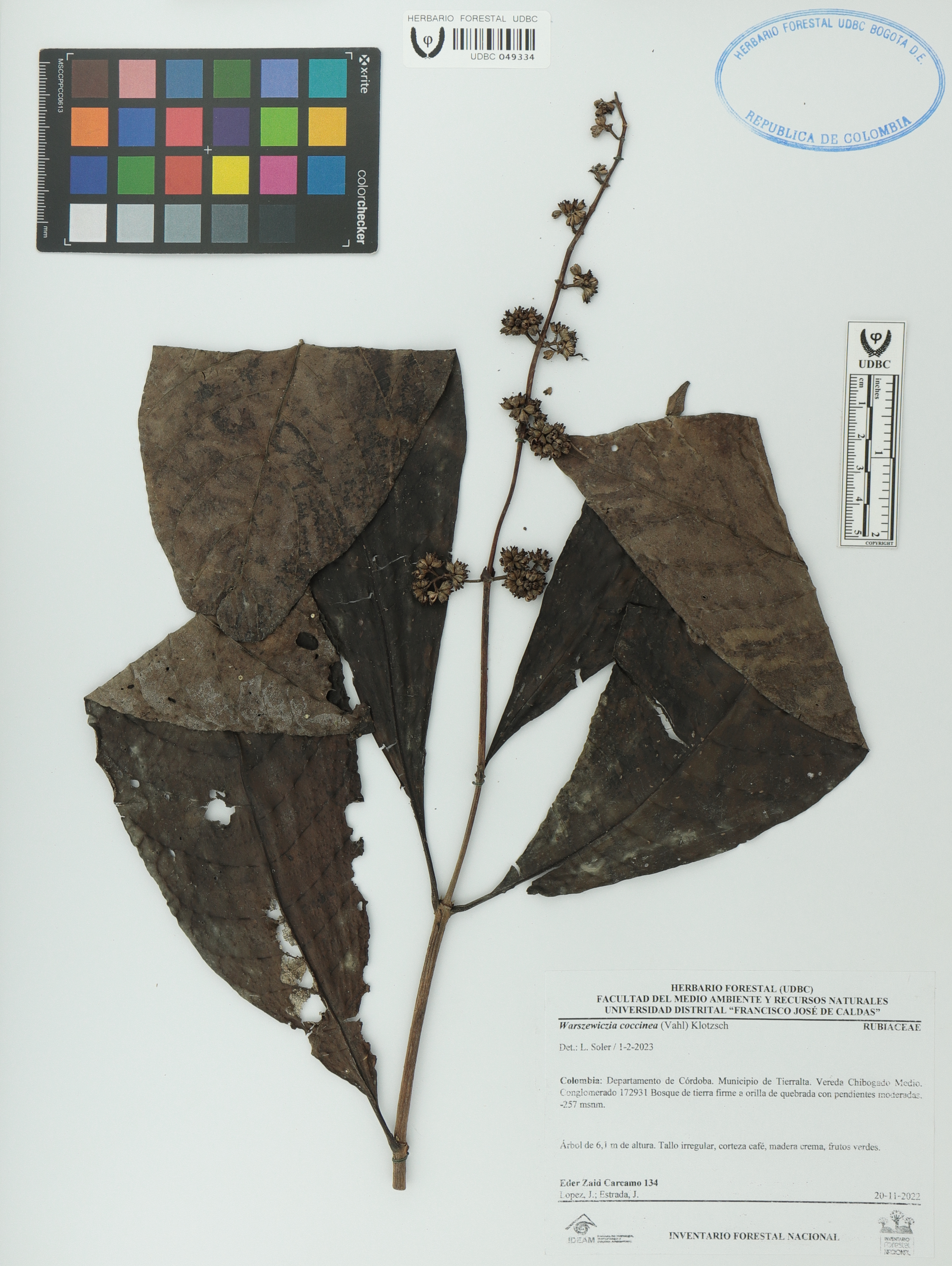 Fotografía del ejemplar Cárcamo-L., E. 134, determinado como Warszewiczia coccinea en el año 2023