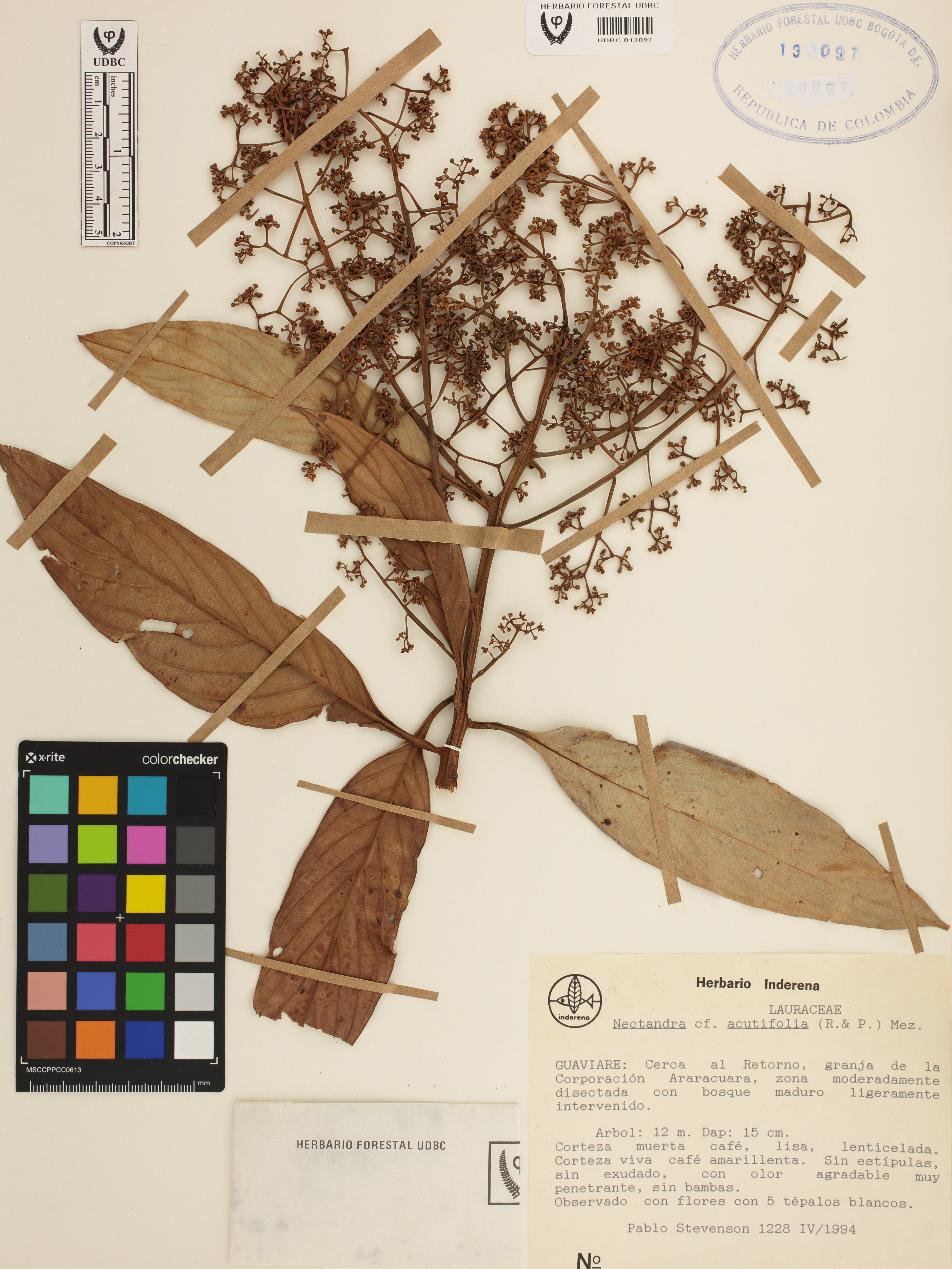 Fotografía del ejemplar Stevenson, P. 1228, determinado como Nectandra membranacea en el año 2024