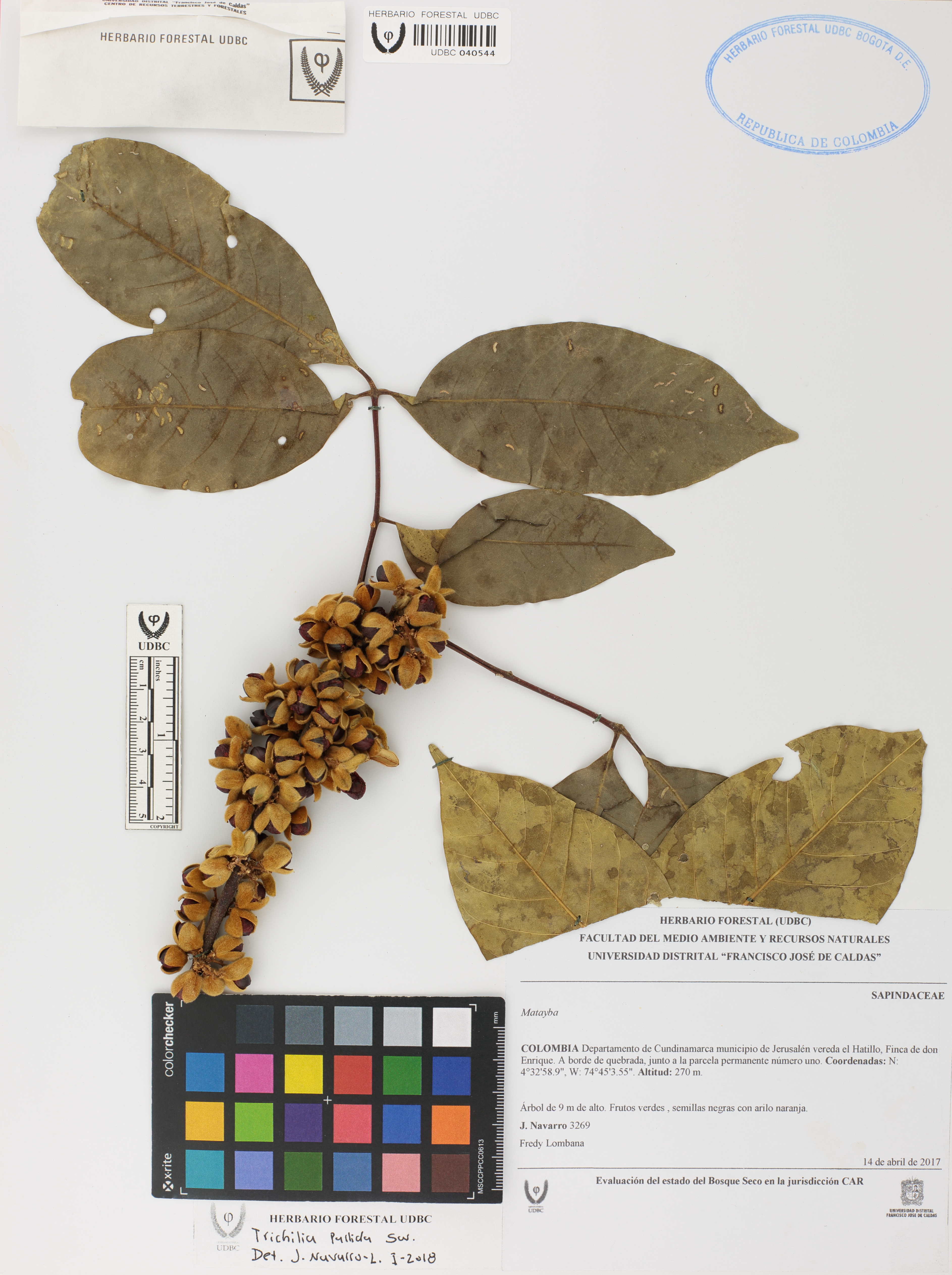 | dc.description | Fotografía del ejemplar Navarro, J. 3269, determinado como Trichilia pallida en el año 2018 | |