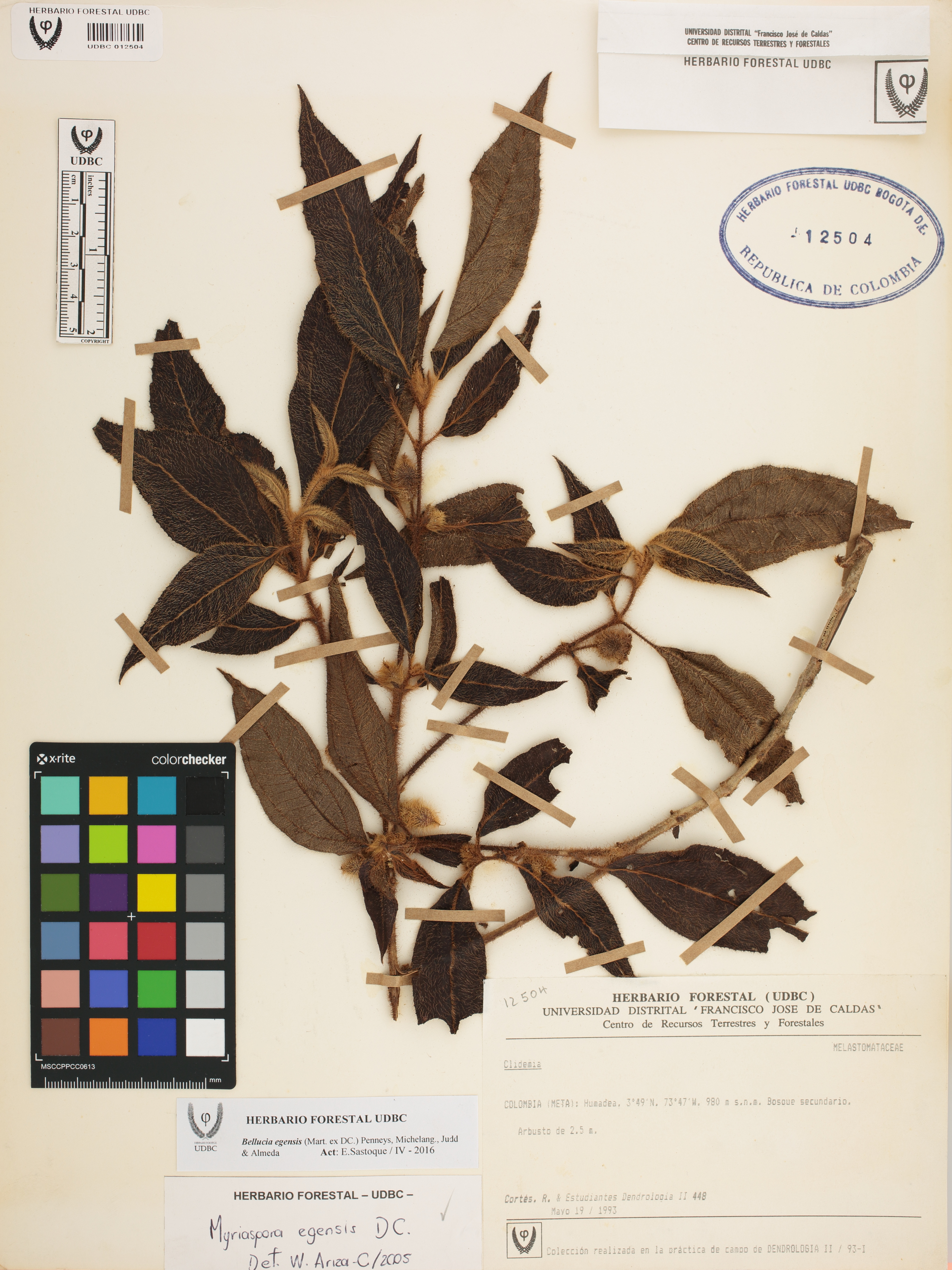 Fotografía del ejemplar Cortés, R. 448, determinado como Bellucia egensis en el año 2005