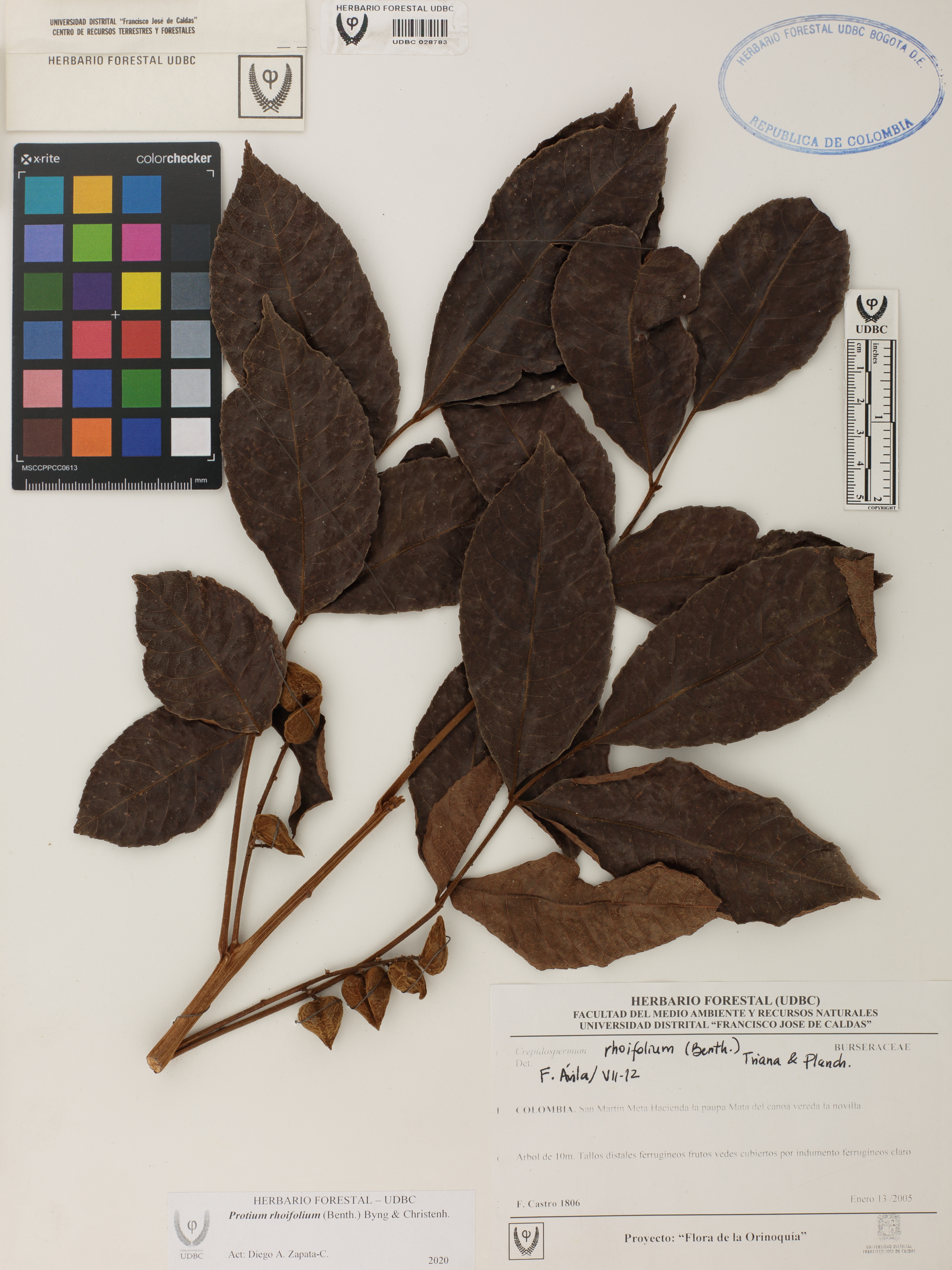 | dc.description | Fotografía del ejemplar Castro, F. 1806, determinado como Protium rhoifolium en el año 2012 | |