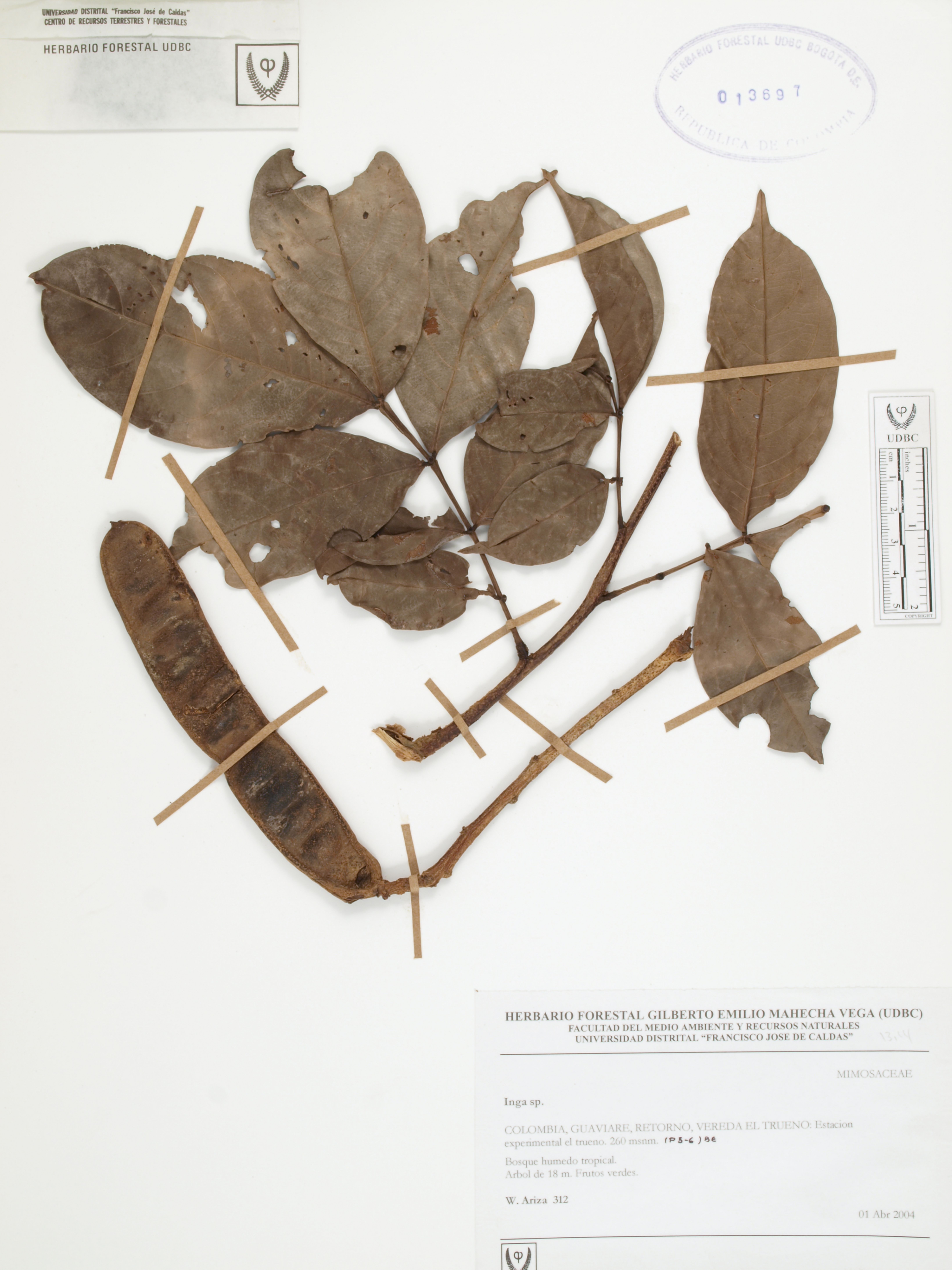Fotografía del ejemplar Ariza, W. 312, determinado como Inga acreana en el año 2014