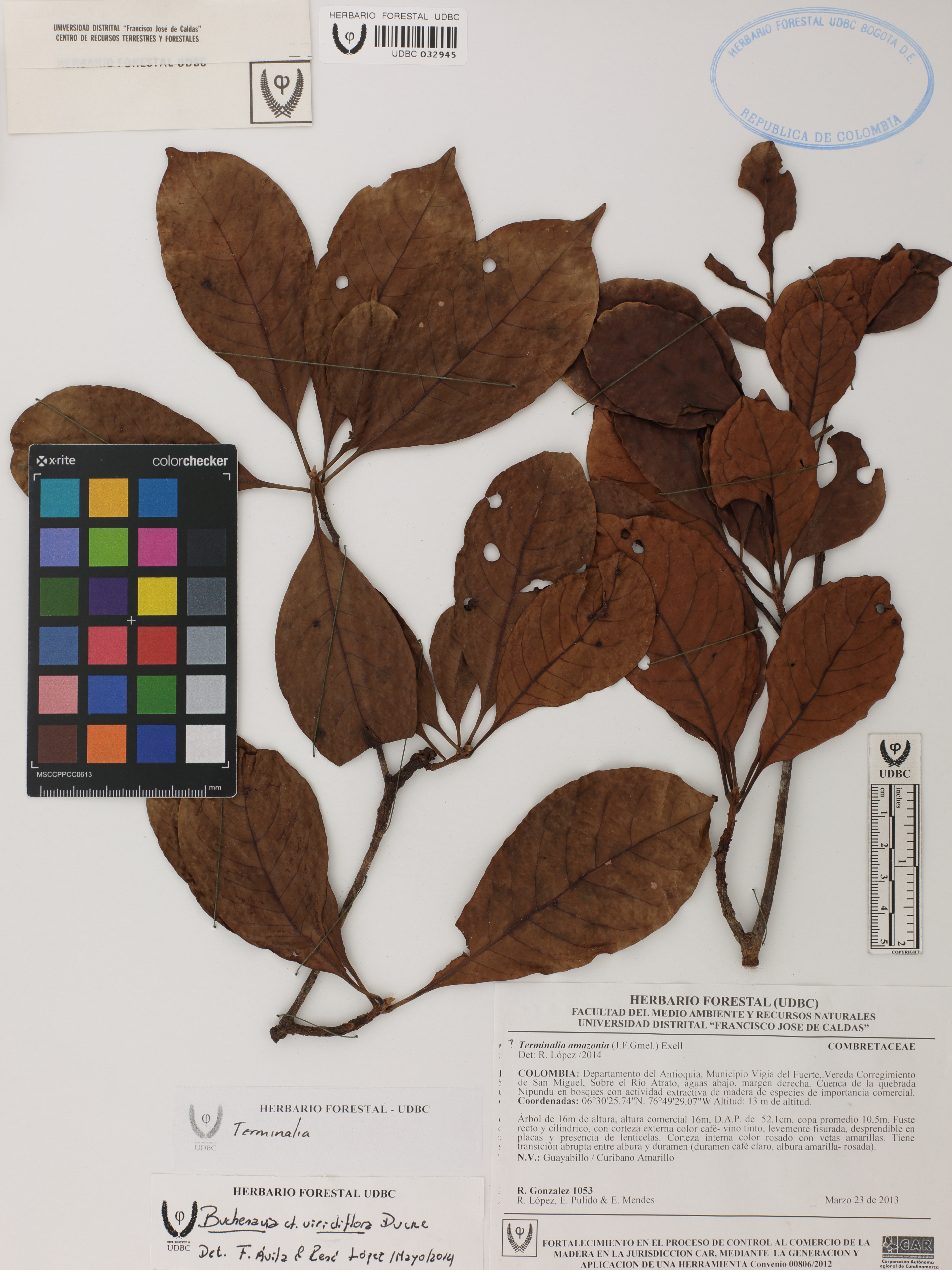 Fotografía del ejemplar González, R. 1053, determinado como Terminalia sp.