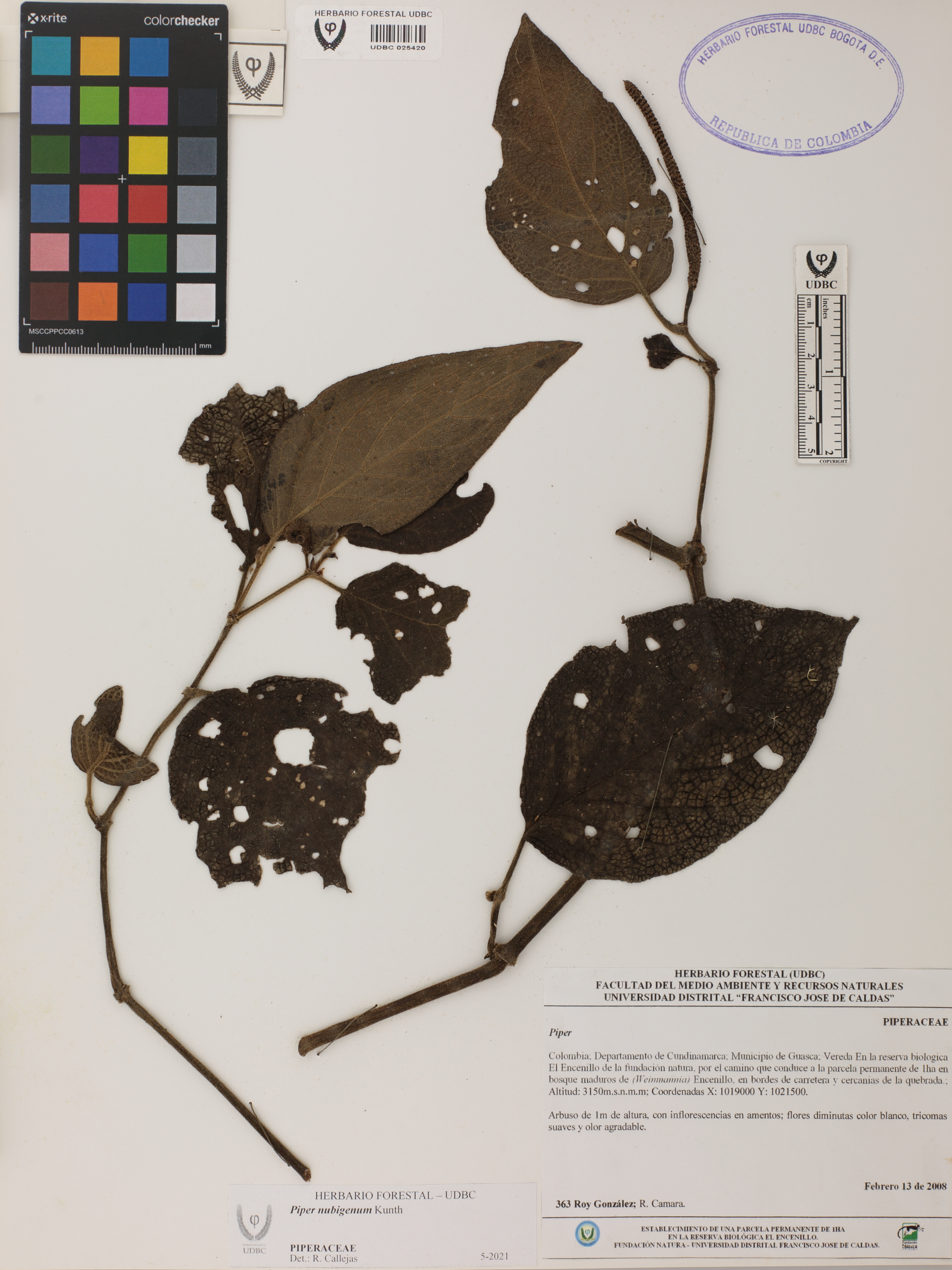Fotografía del ejemplar González, R. 363, determinado como Piper nubigenum en el año 2021
