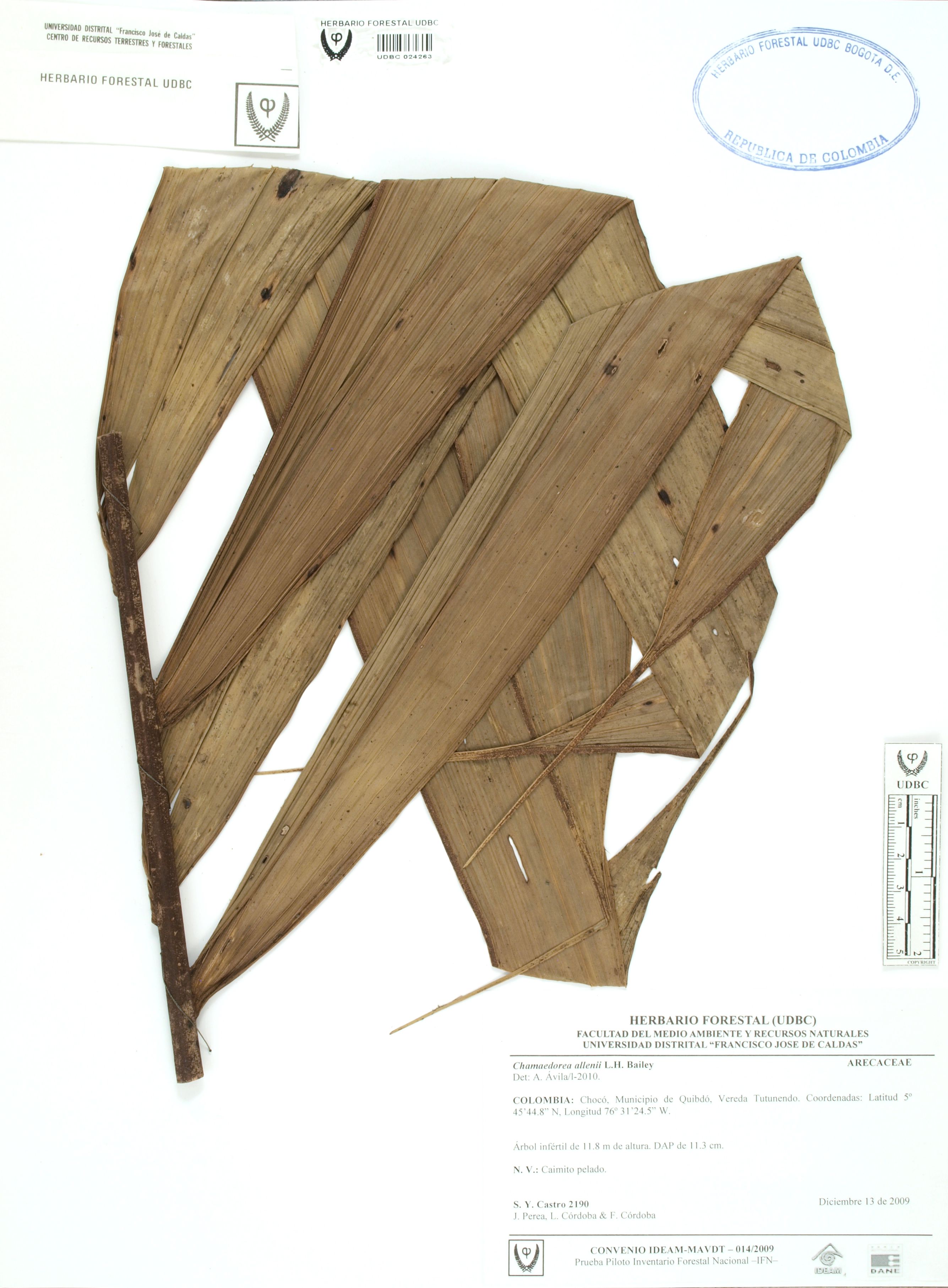 Fotografía del ejemplar Castro, S. 2190, determinado como Chamaedorea allenii en el año 2010