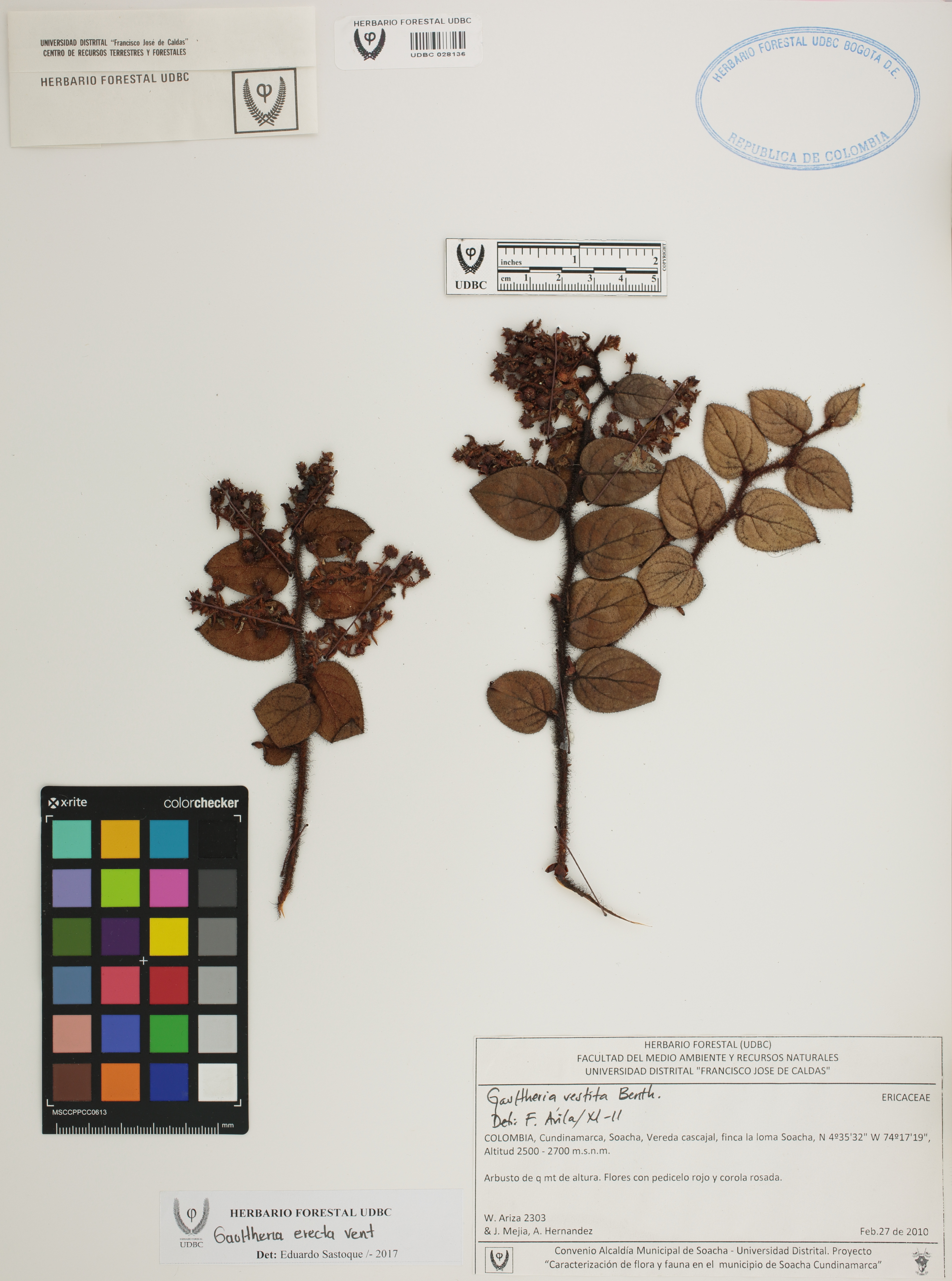 Fotografía del ejemplar Ariza, W. 2303, determinado como Gaultheria erecta en el año 2017