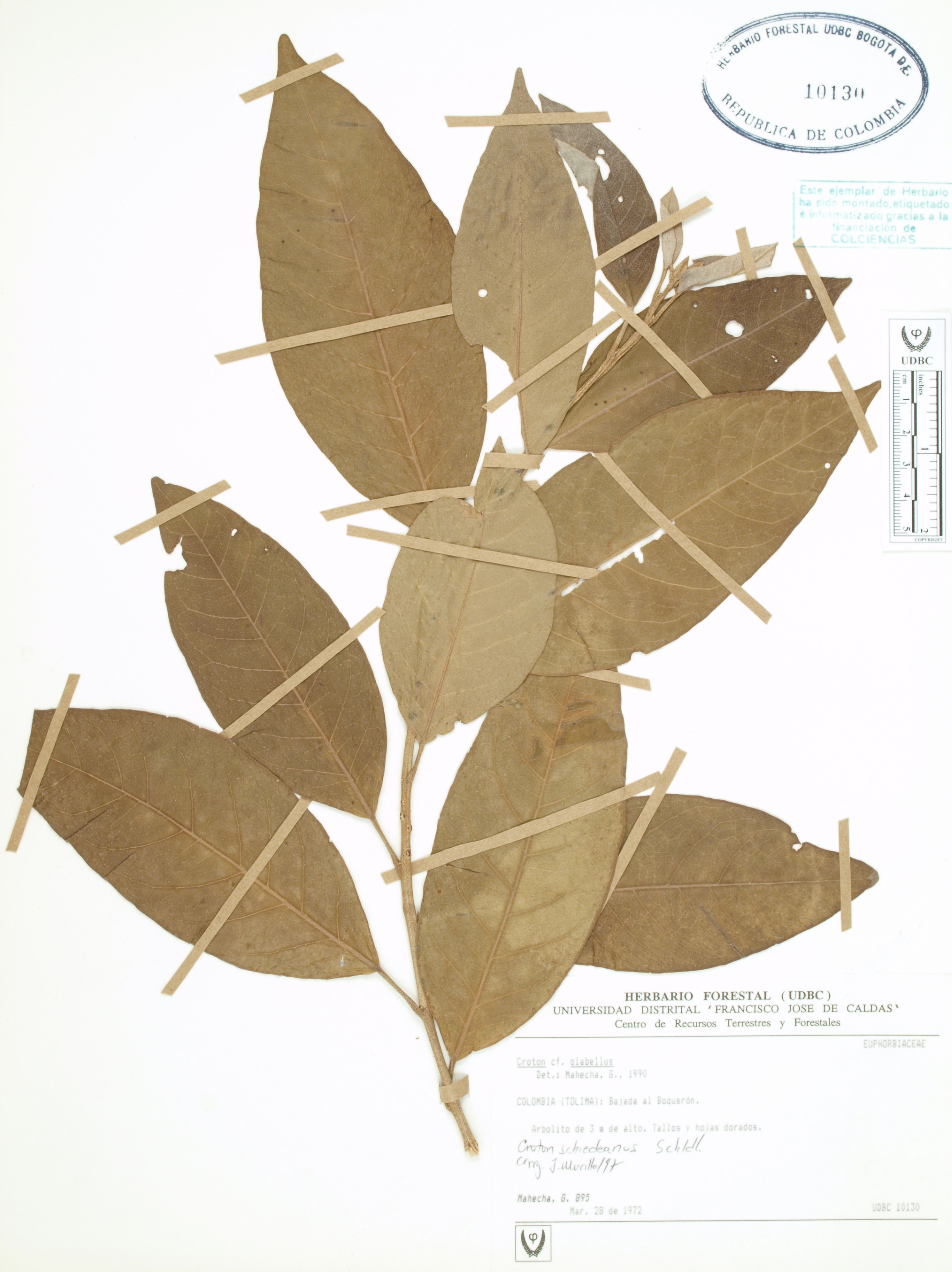 Fotografía del ejemplar Mahecha, G. 895, determinado como Croton schiedeanus en el año 1997