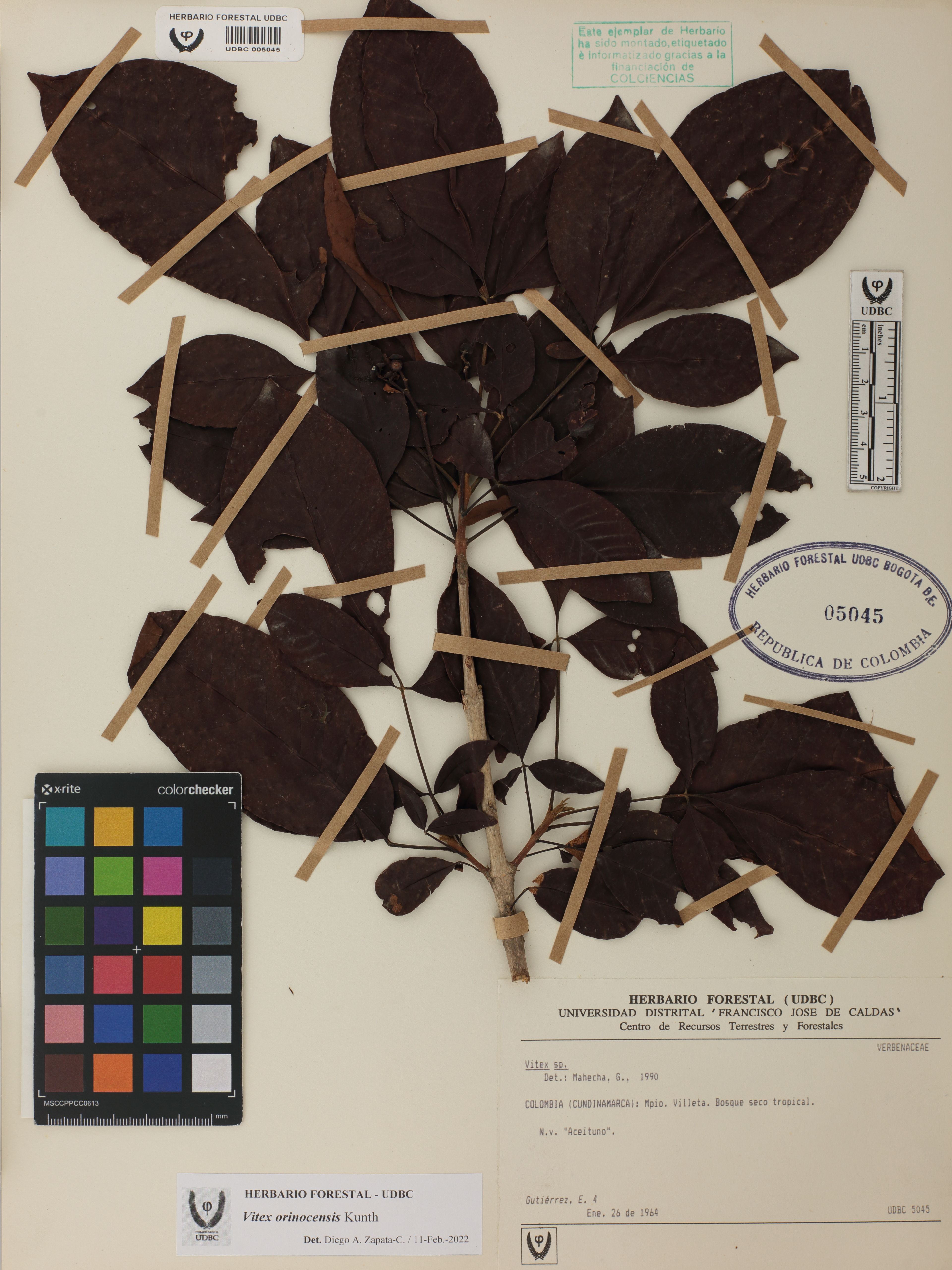 Fotografía del ejemplar Gutiérrez, E. 4, determinado como Vitex orinocensis en el año 2022