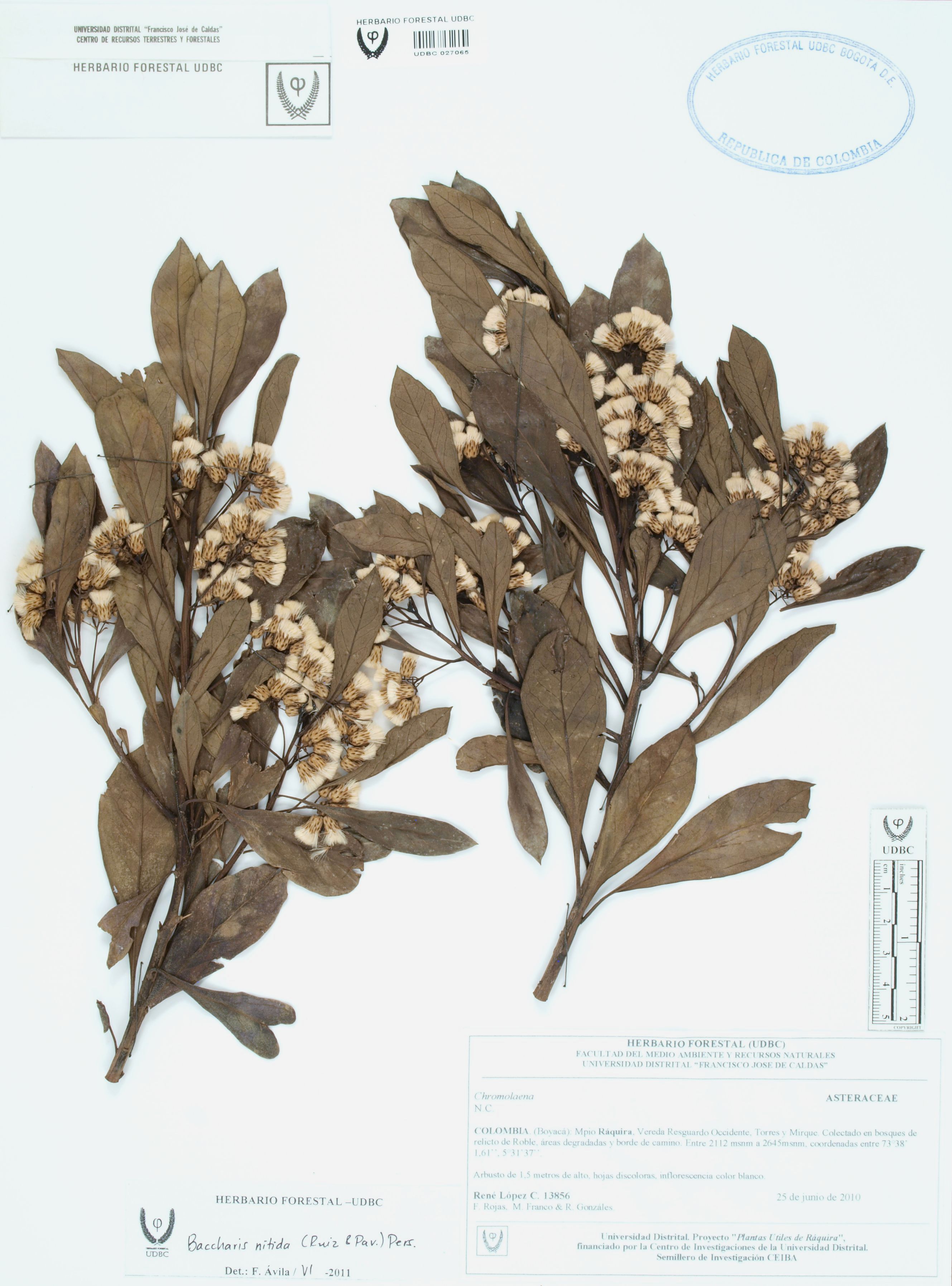 Fotografía del ejemplar López, R. 13856, determinado como Baccharis nitida en el año 2011