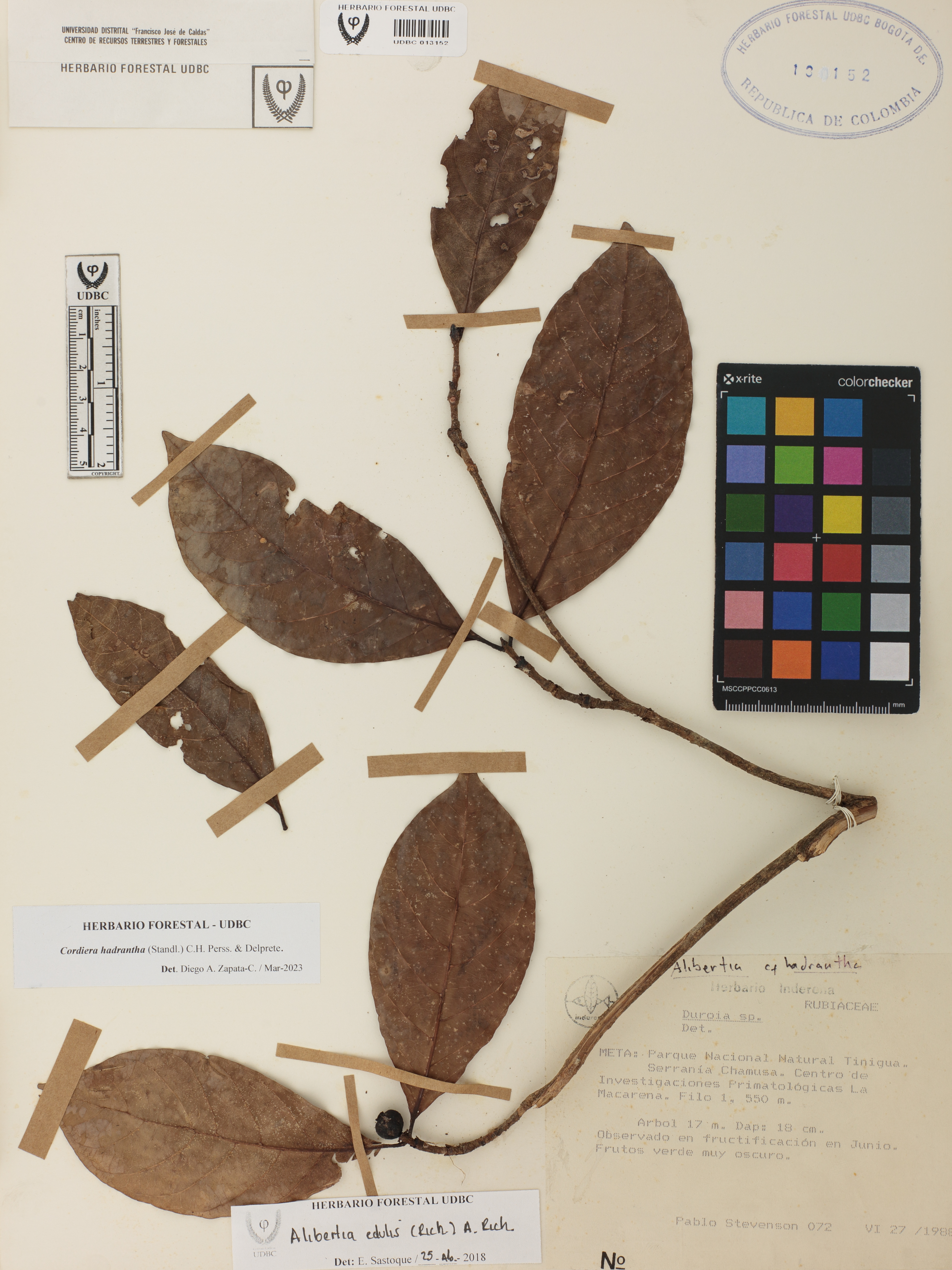 Fotografía del ejemplar Stevenson, P. 72, determinado como Cordiera hadrantha en el año 2023