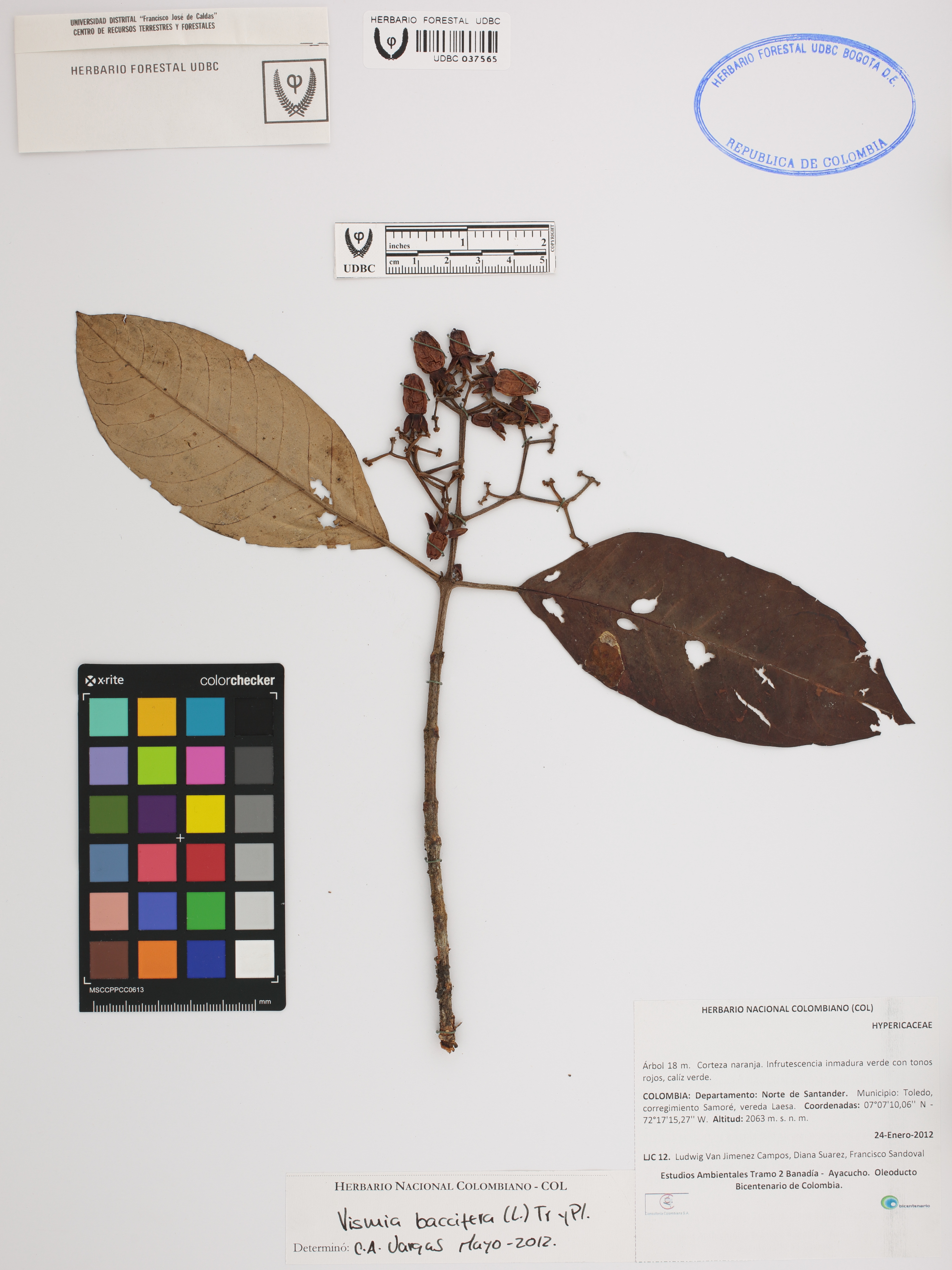 | dc.description | Fotografía del ejemplar Jiménez, L. 12, determinado como Vismia baccifera en el año 2012 | |