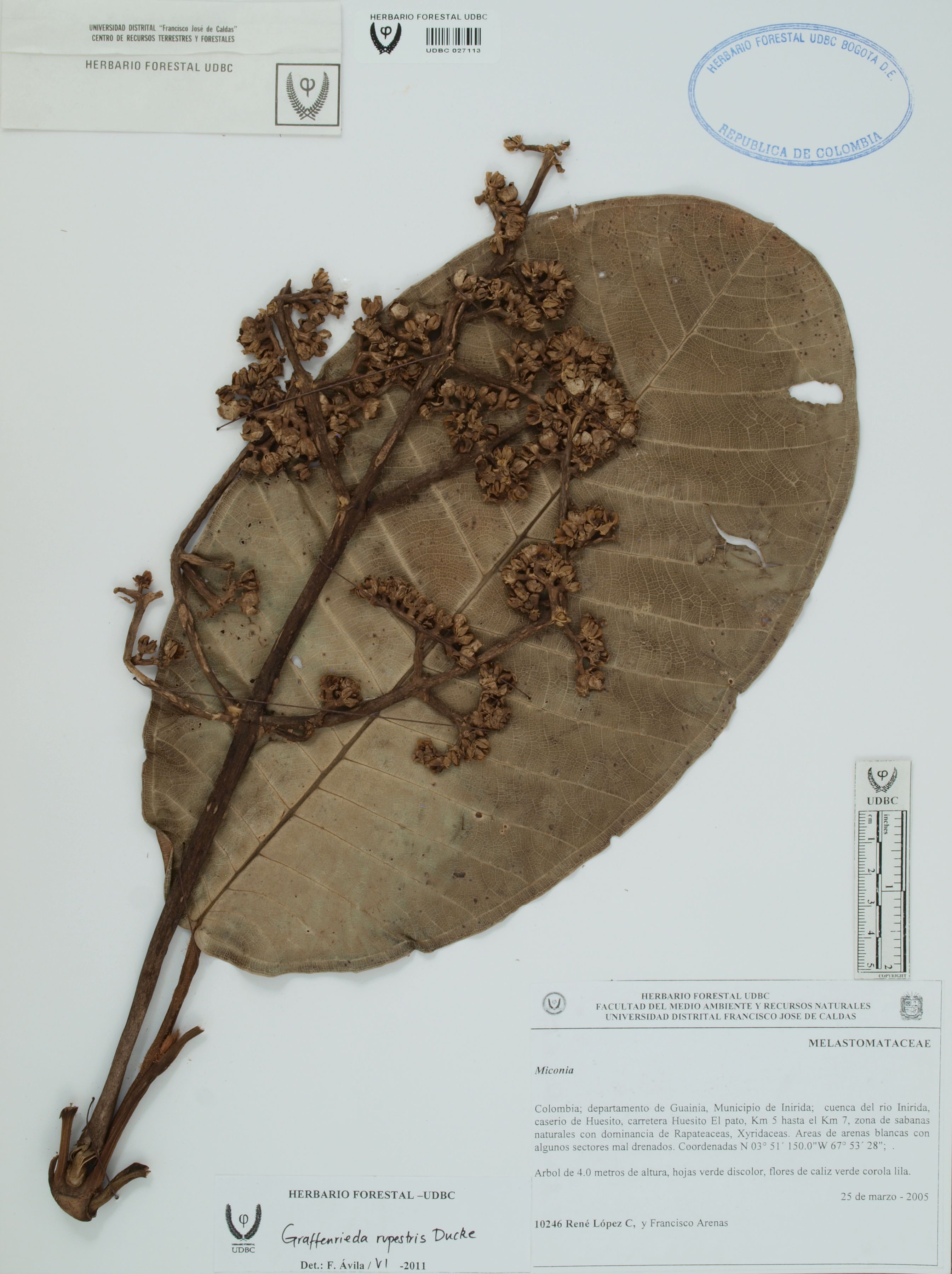Fotografía del ejemplar López, R. 10246, determinado como Graffenrieda rupestris en el año 2011
