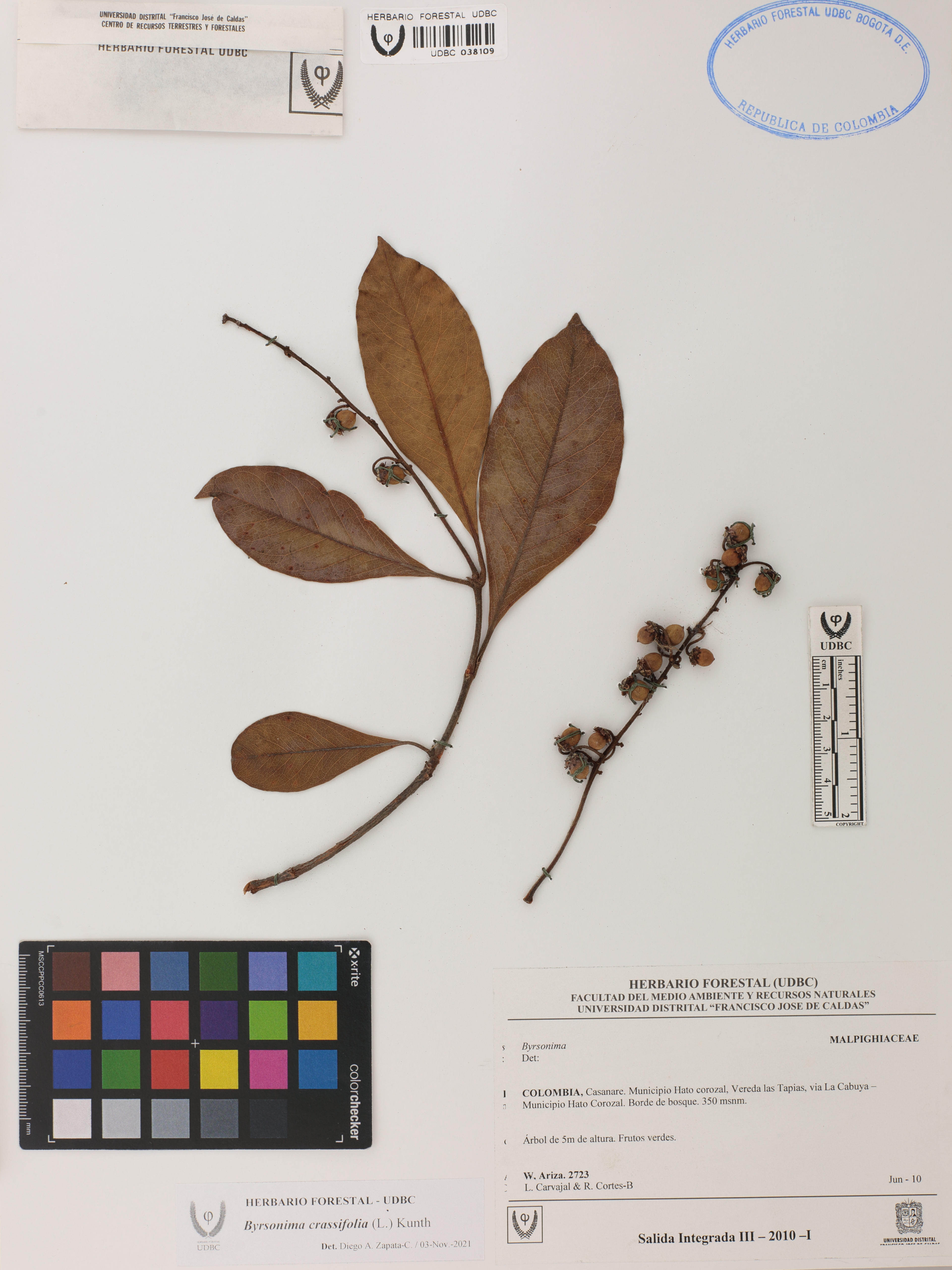 | dc.description | Fotografía del ejemplar Ariza, W. 2723, determinado como Byrsonima crassifolia en el año 2021 | |