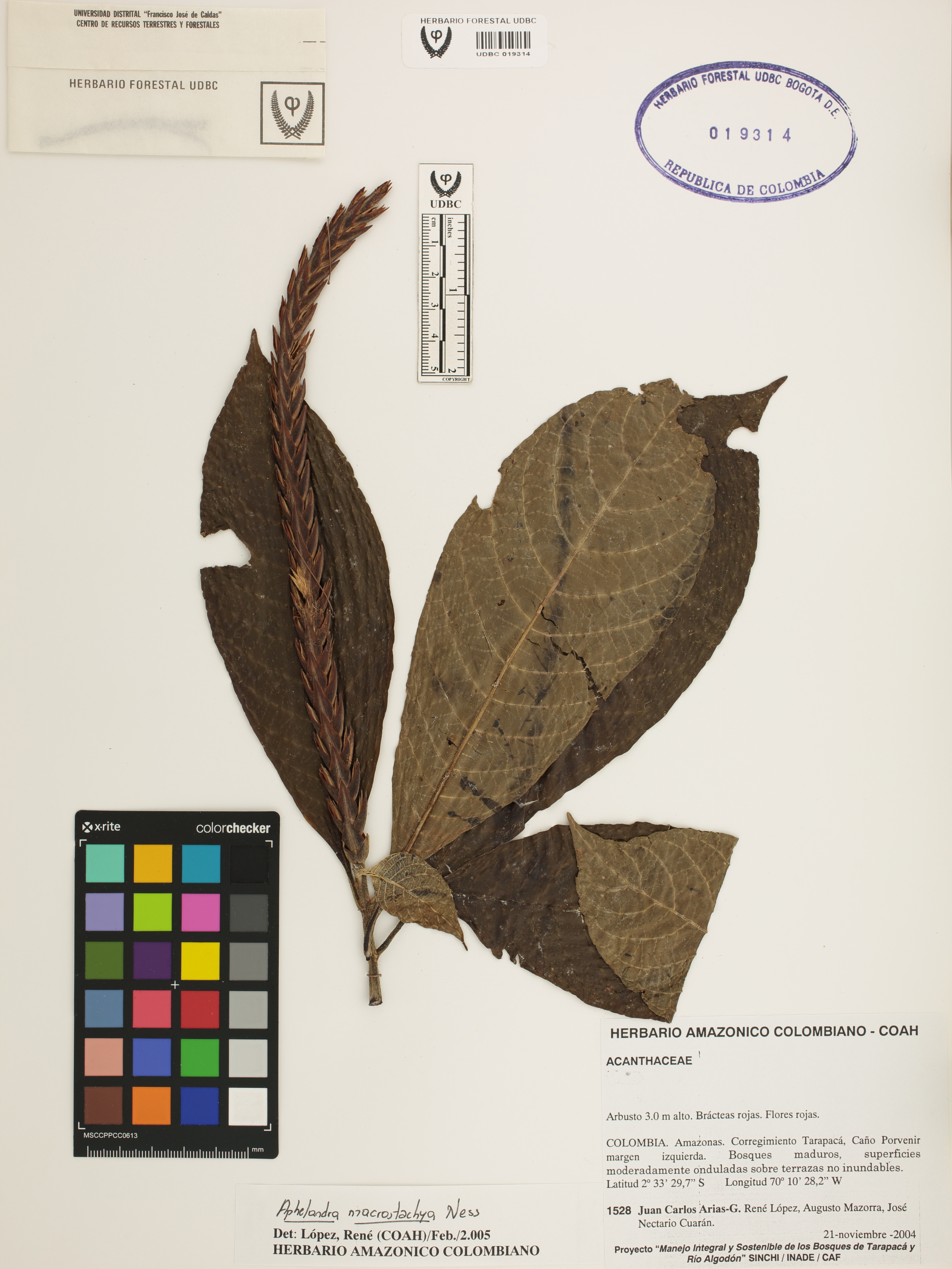 Fotografía del ejemplar Arias-G., J. 1528, determinado como Aphelandra macrostachya