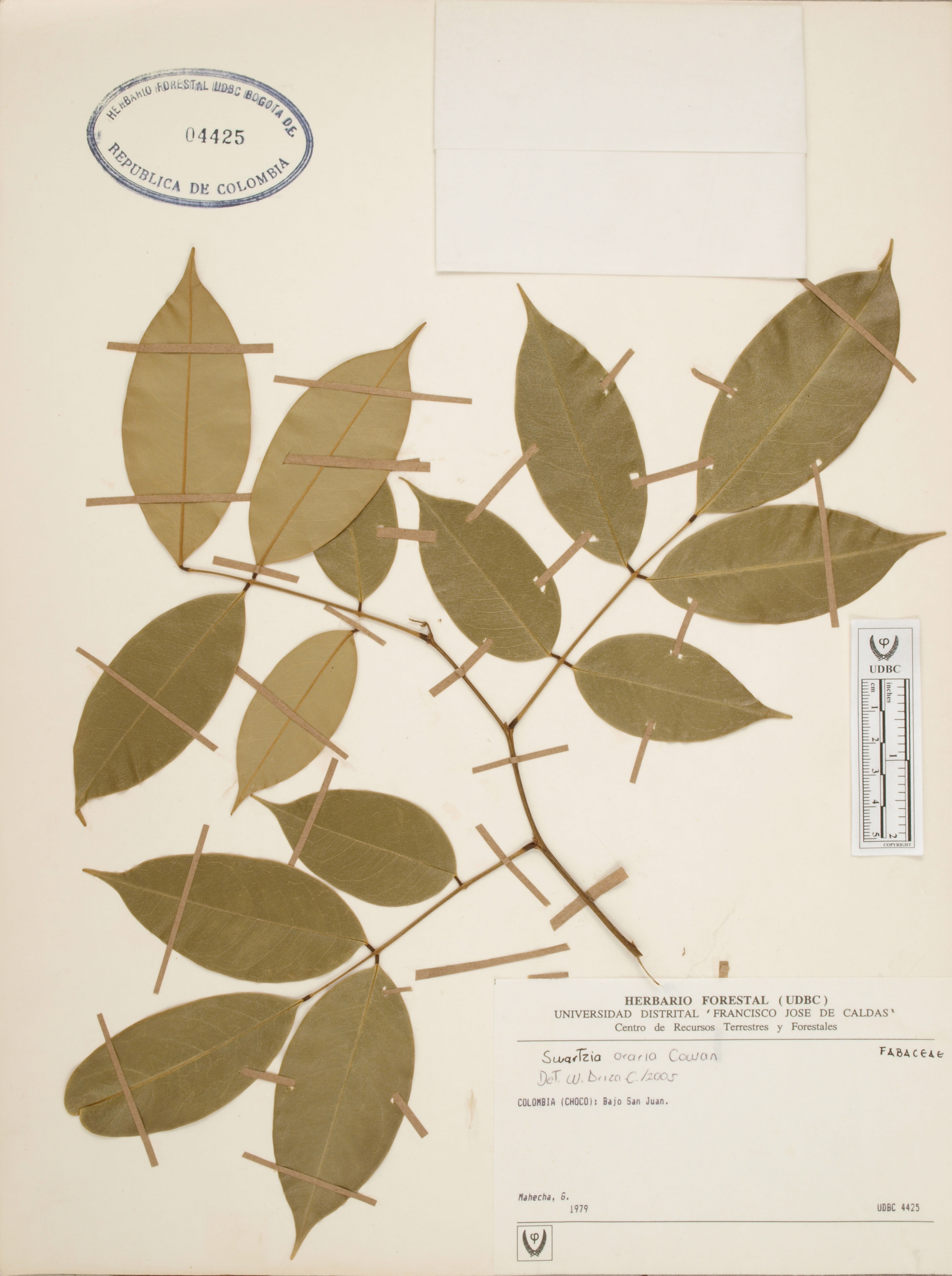 Fotografía del ejemplar Mahecha, G., determinado como Swartzia oraria en el año 2005