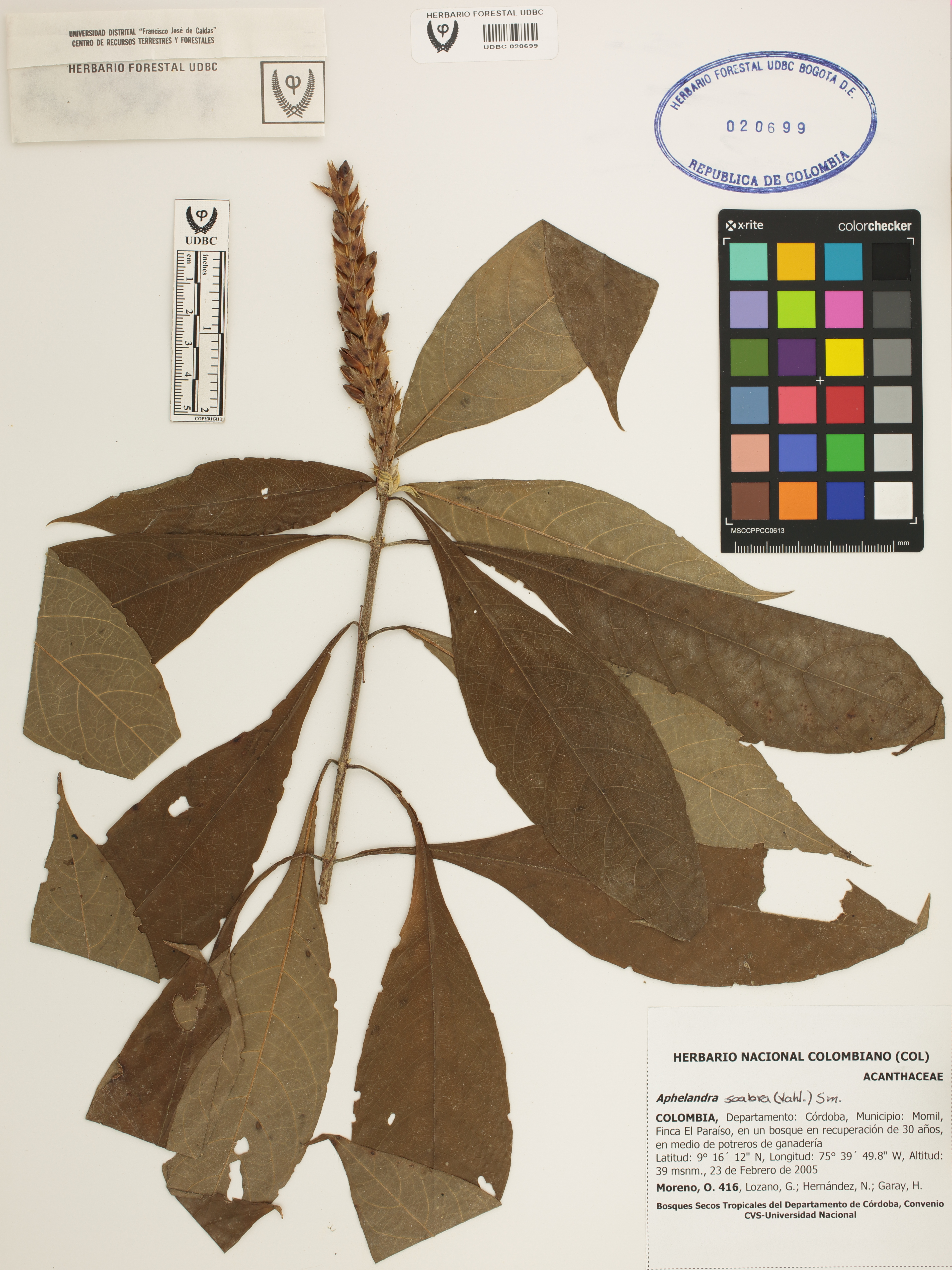 Fotografía del ejemplar Moreno, O. 416, determinado como Aphelandra scabra