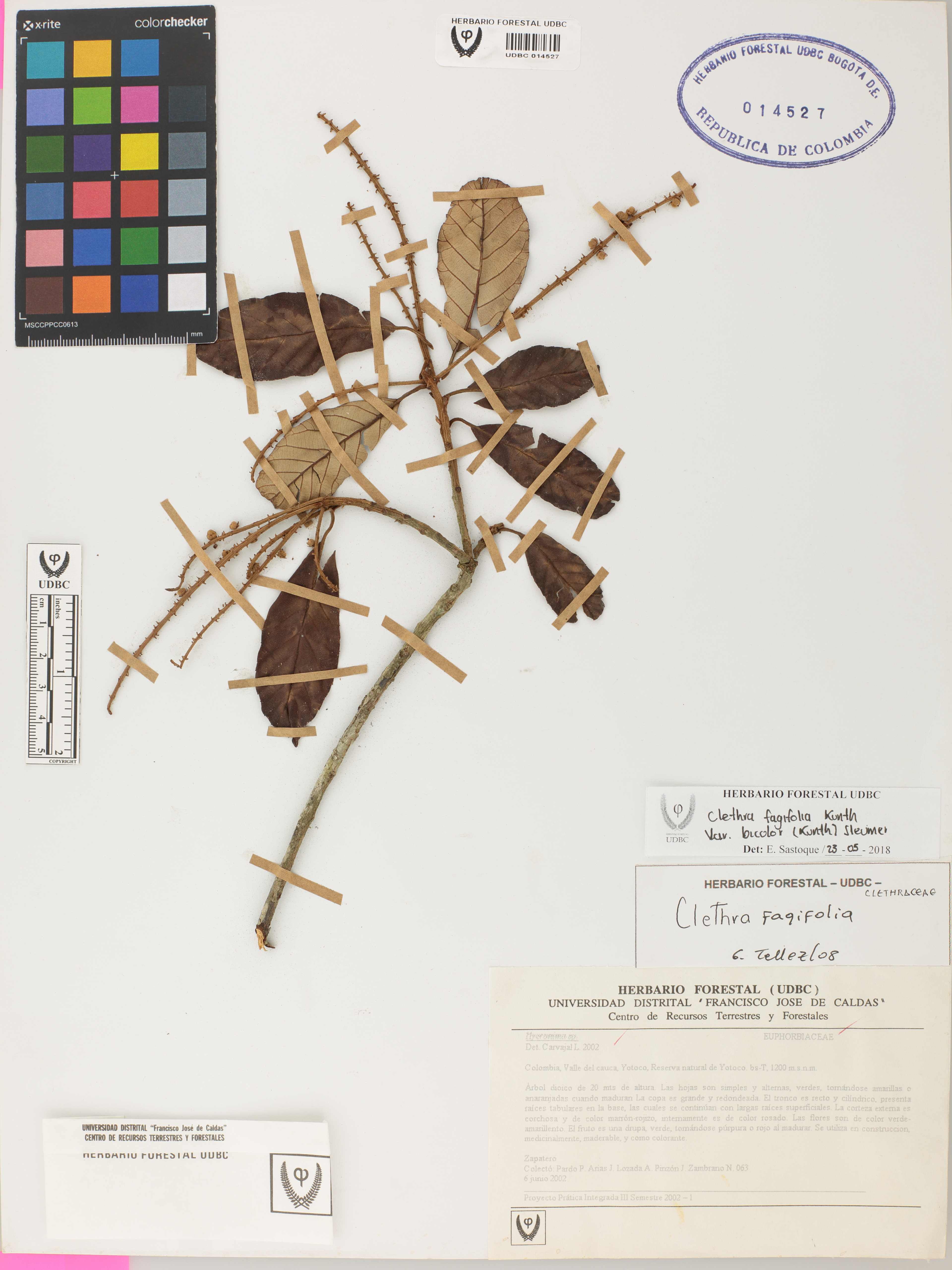 Fotografía del ejemplar Pardo, P. 63, determinado como Clethra fagifolia var. bicolor en el año 2018