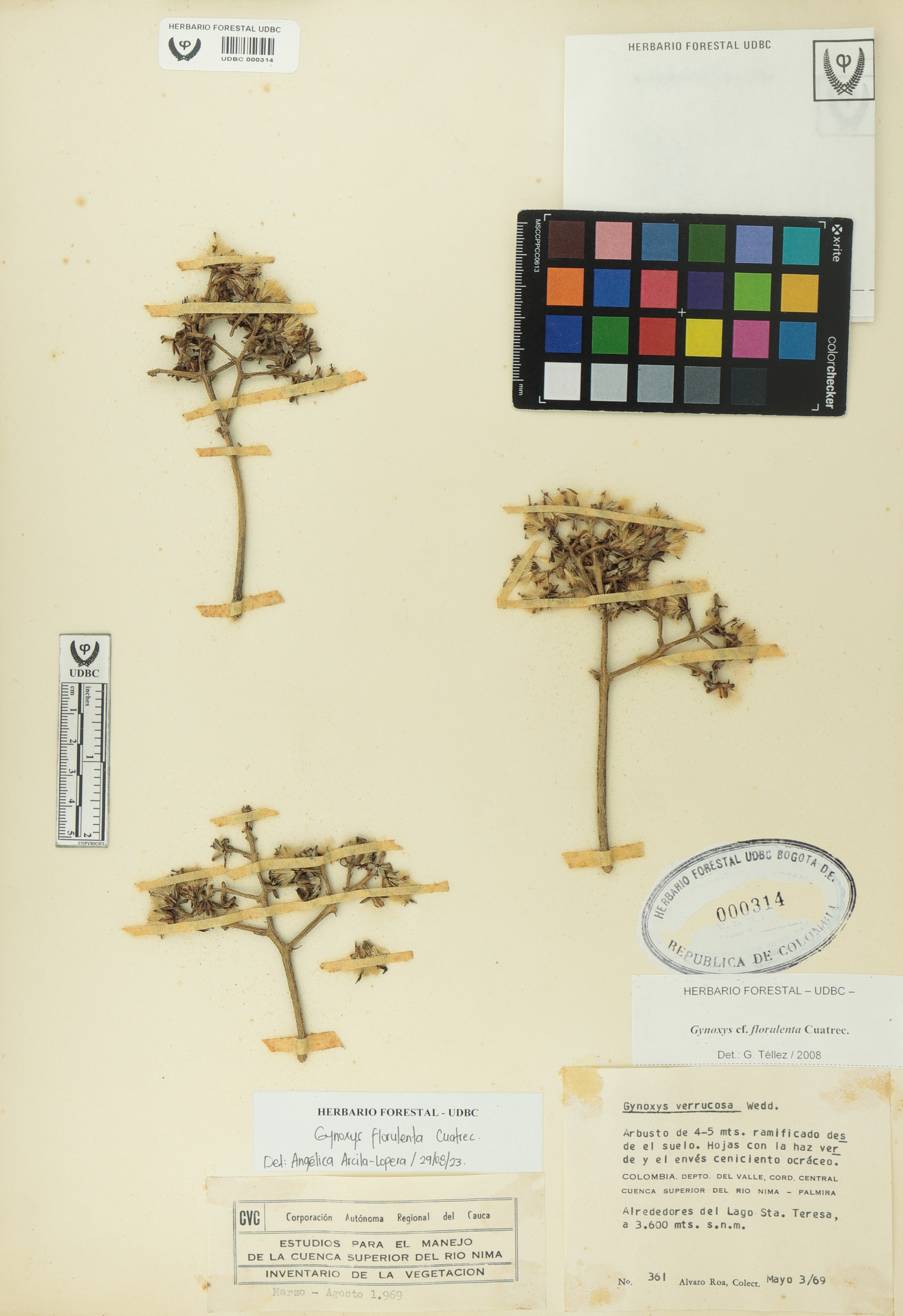 Fotografía del ejemplar Roa, A. 361, determinado como Gynoxys florulenta en el año 2023