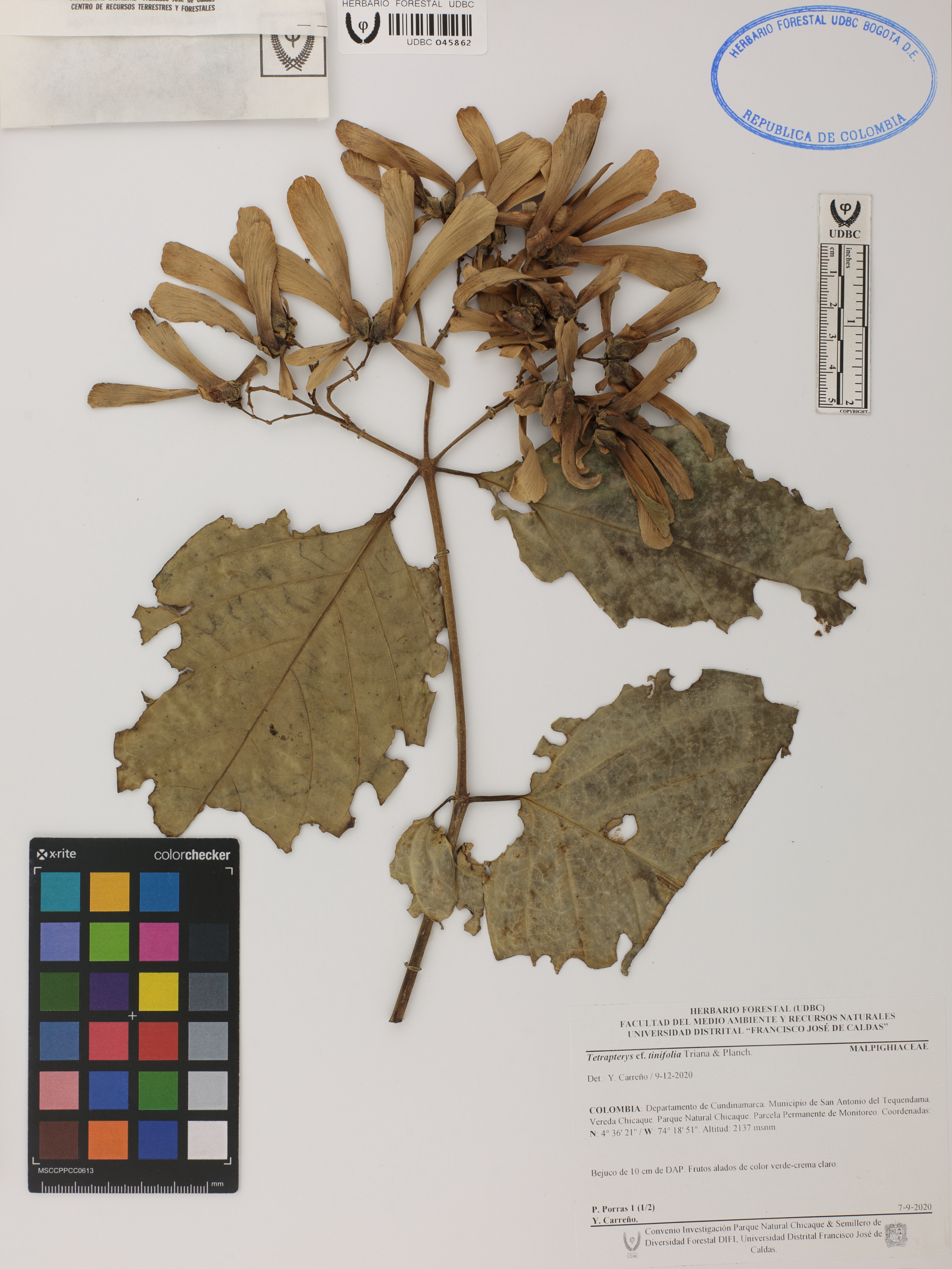 Fotografía del ejemplar Porras, P. 1, determinado como Tetrapterys tinifolia en el año 2020