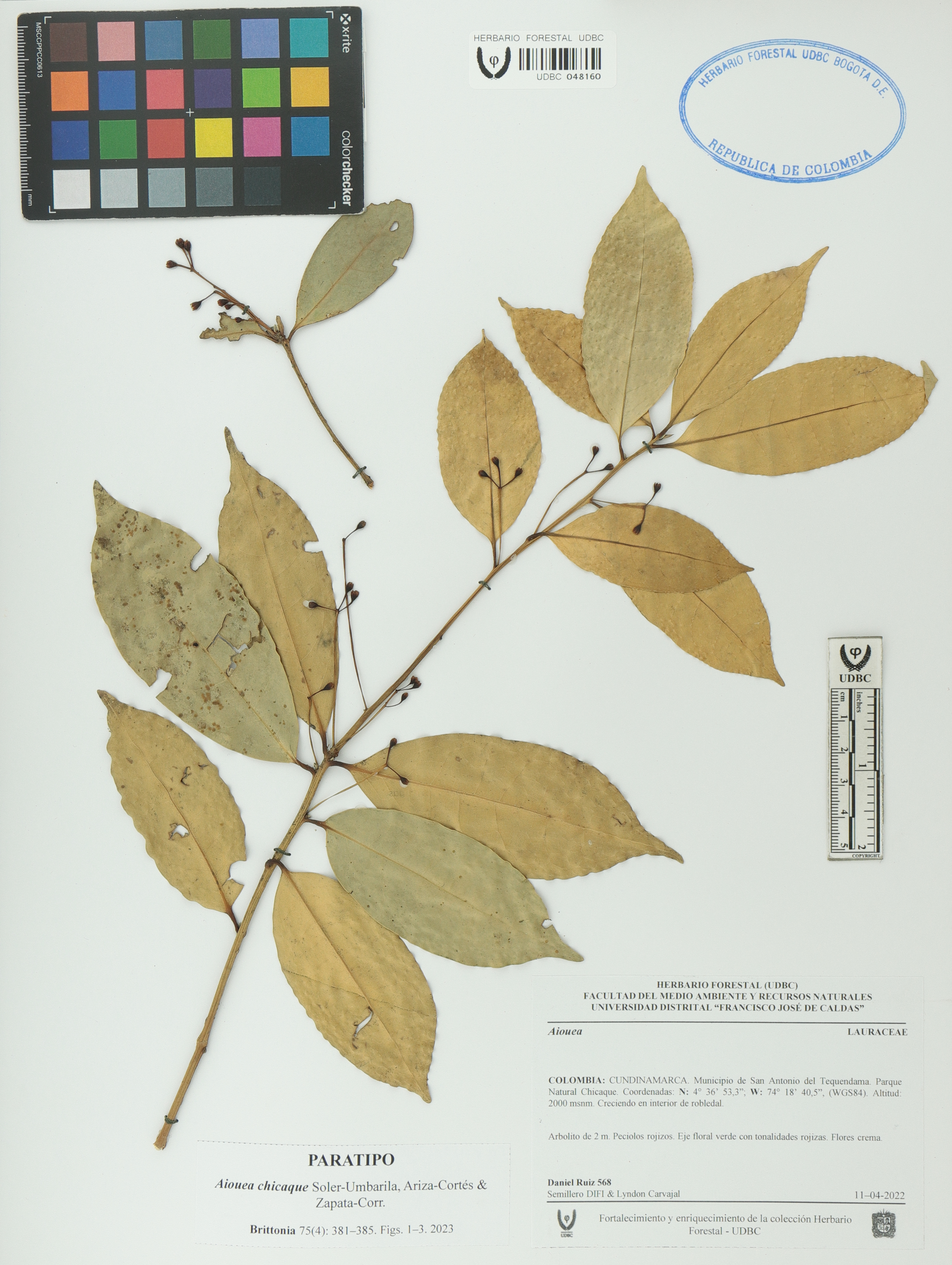 Fotografía del ejemplar Ruiz, D. 568, Paratipo de Aiouea chicaque