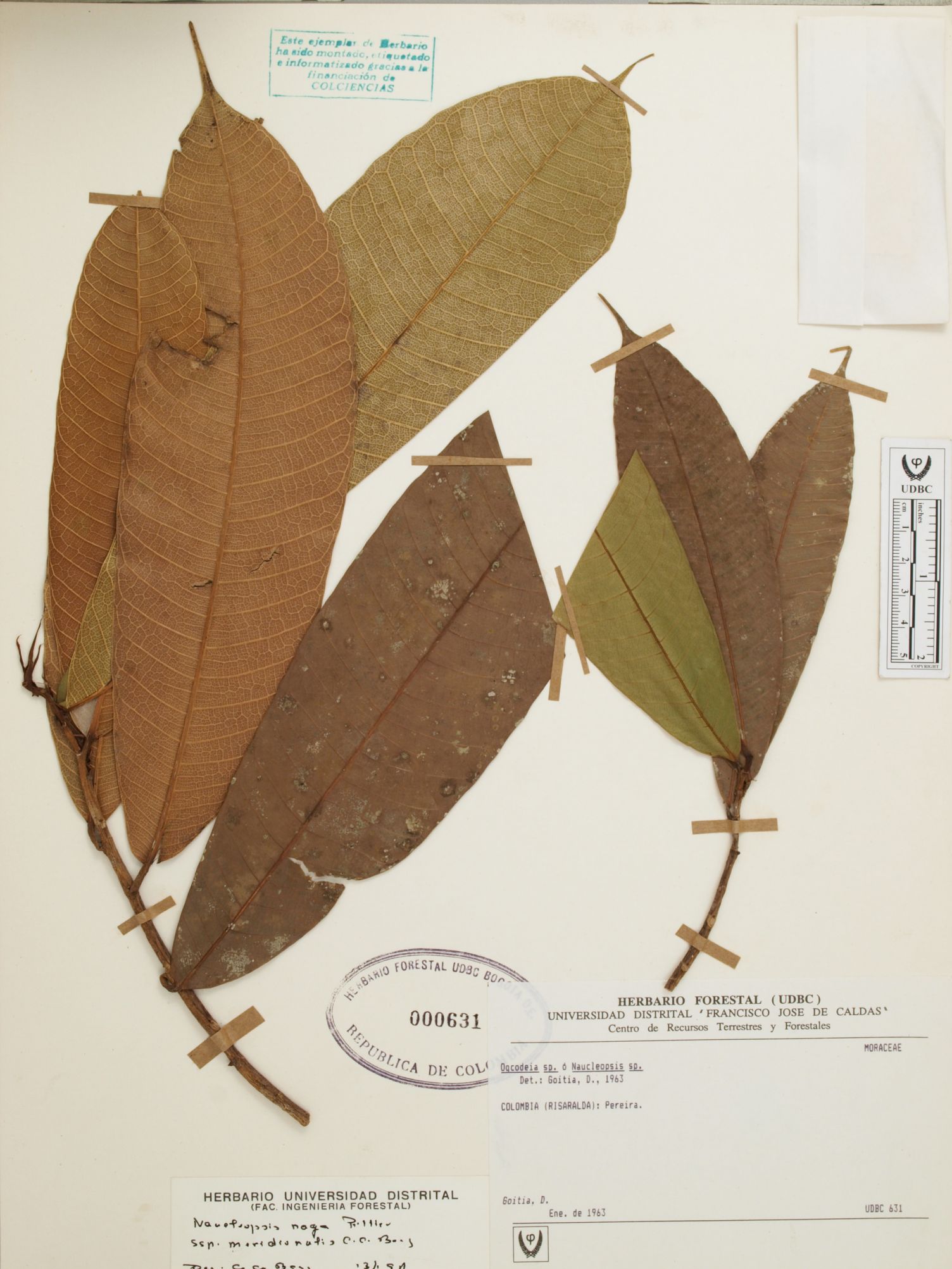 Fotografía del ejemplar Goitia, D., determinado como Naucleopsis naga subsp. meridionalis en el año 1997