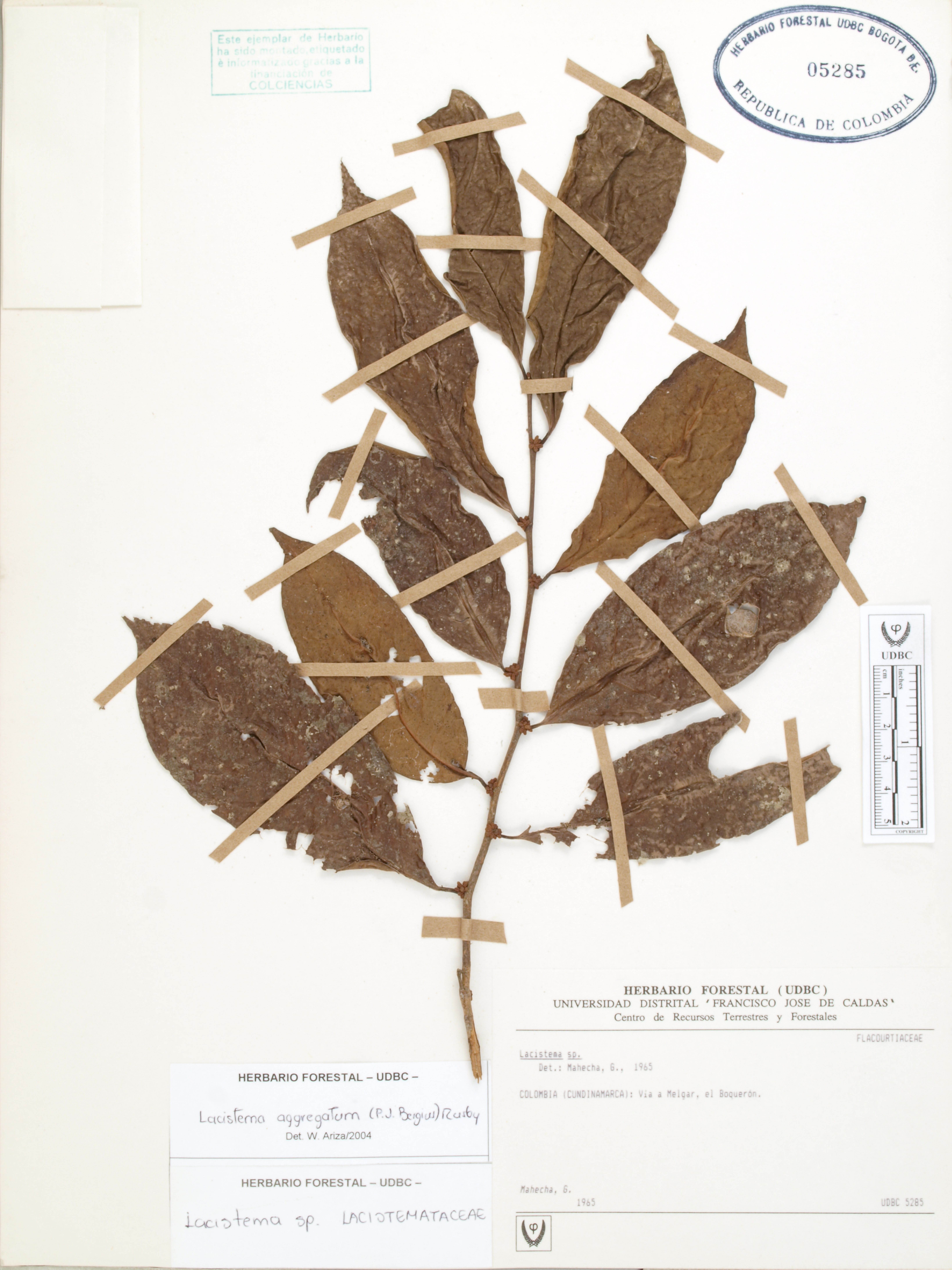 Fotografía del ejemplar Mahecha, G., determinado como Lacistema aggregatum en el año 2004