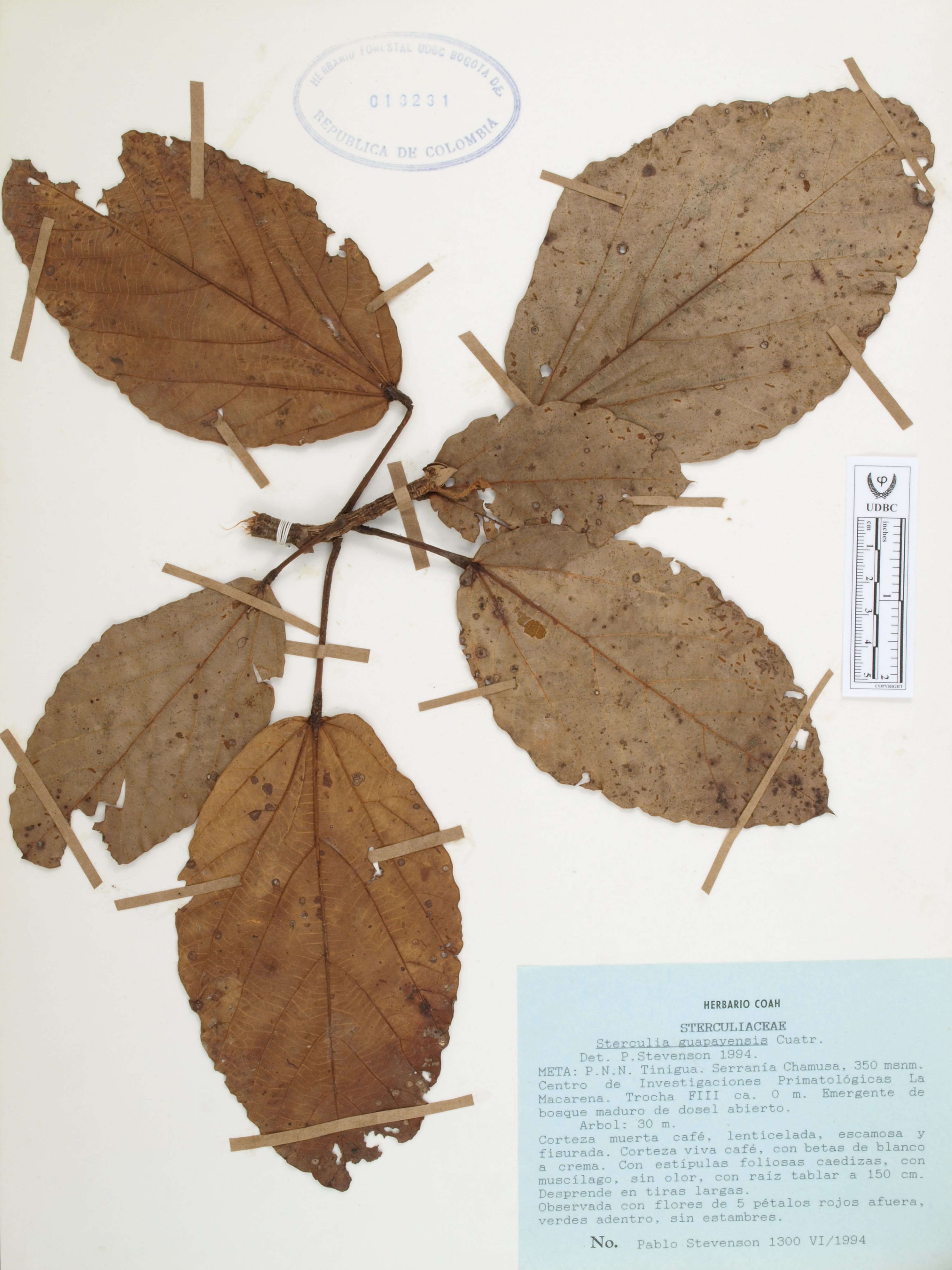 Fotografía del ejemplar Stevenson, P. 1300, determinado como Sterculia guapayensis en el año 1994