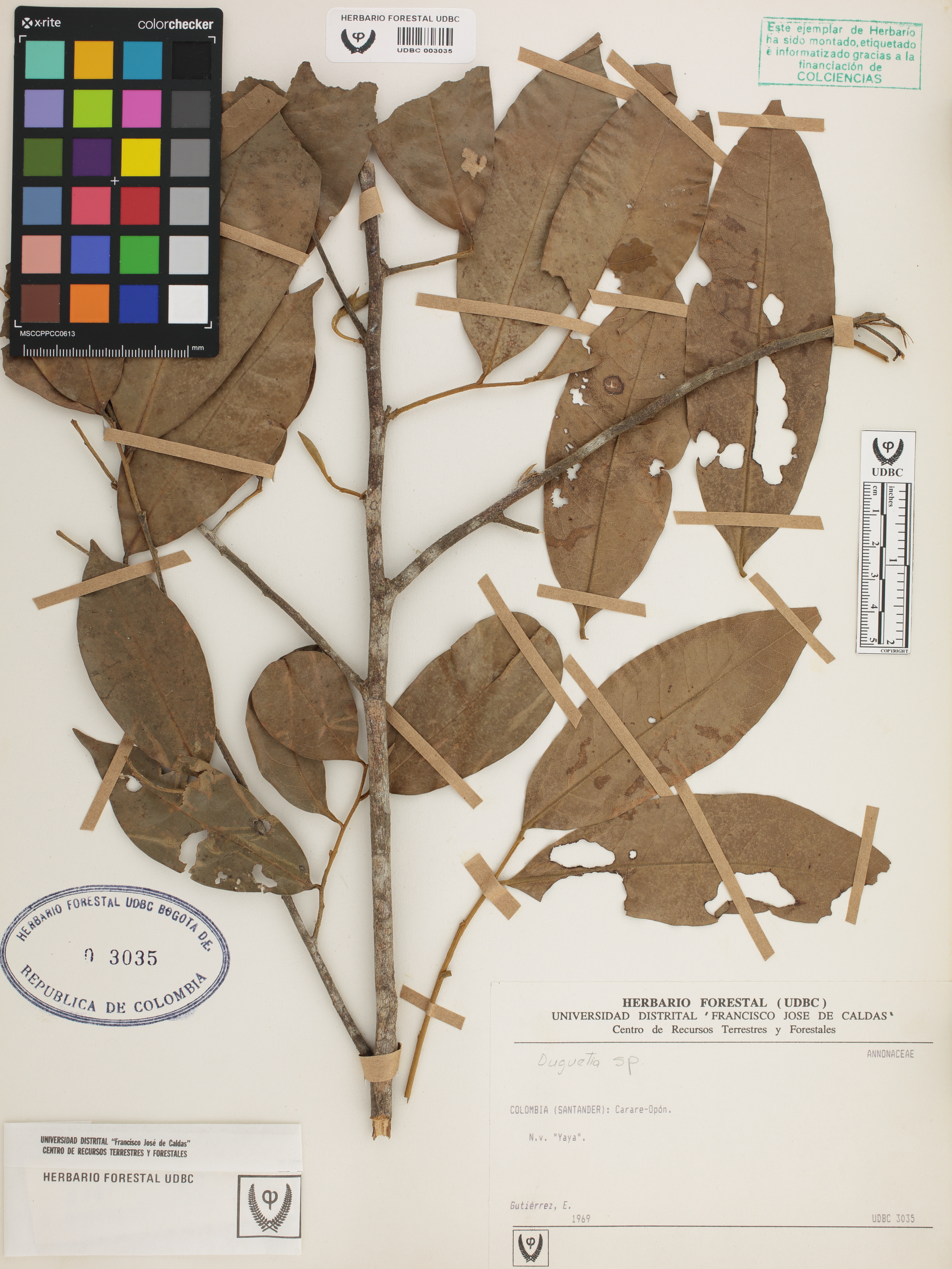 Fotografía del ejemplar Gutiérrez, E., determinado como Duguetia sp.