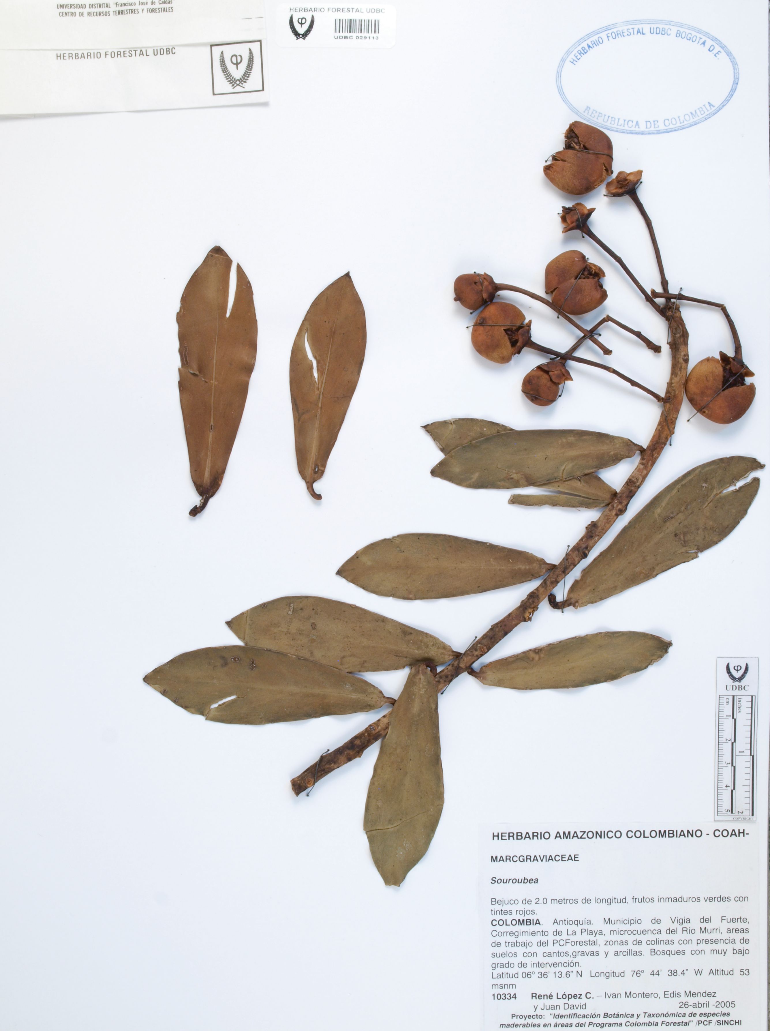 Fotografía del ejemplar López, R. 10334, determinado como Souroubea sp.
