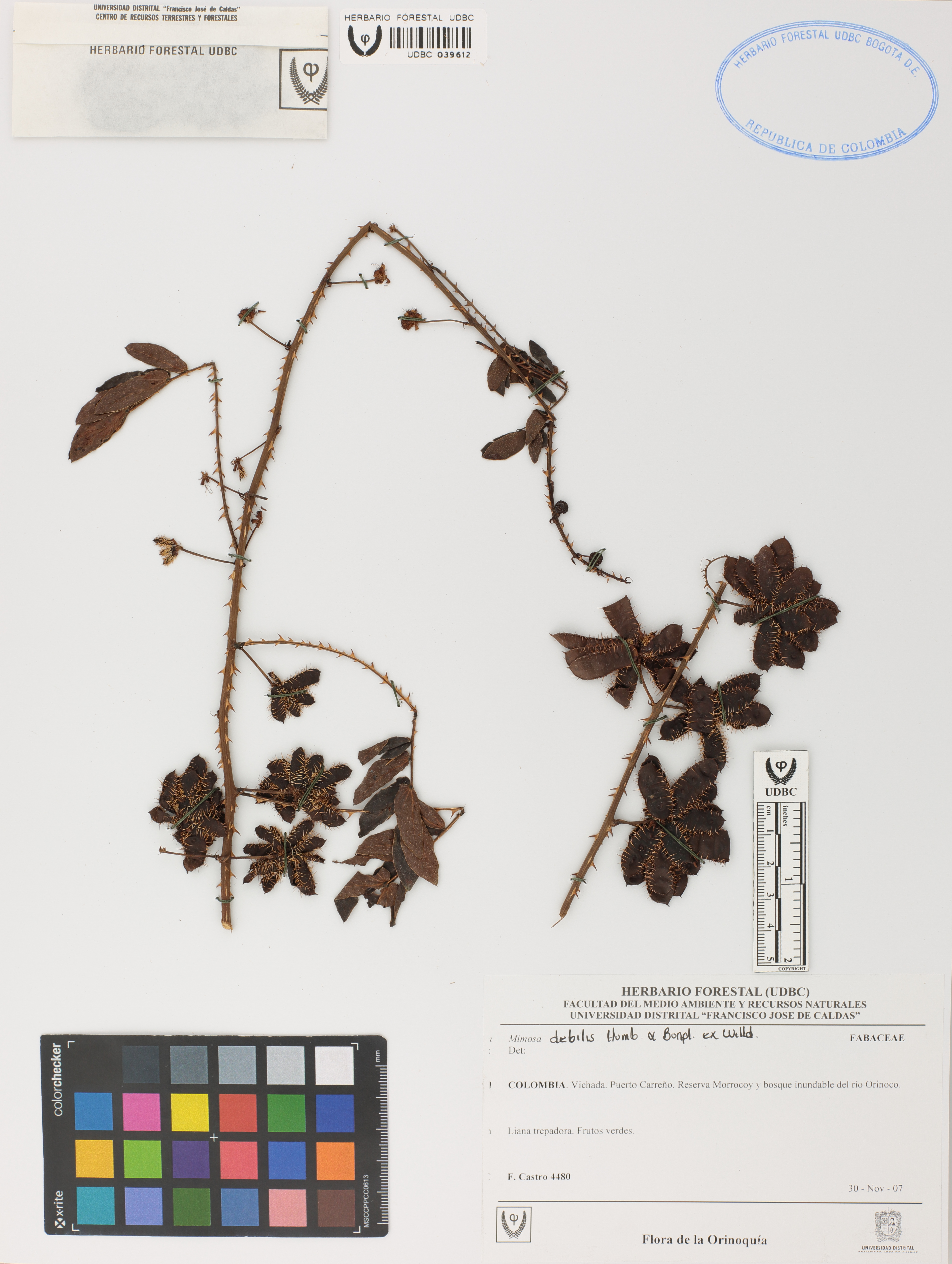 Fotografía del ejemplar Castro, F. 4480, determinado como Mimosa debilis