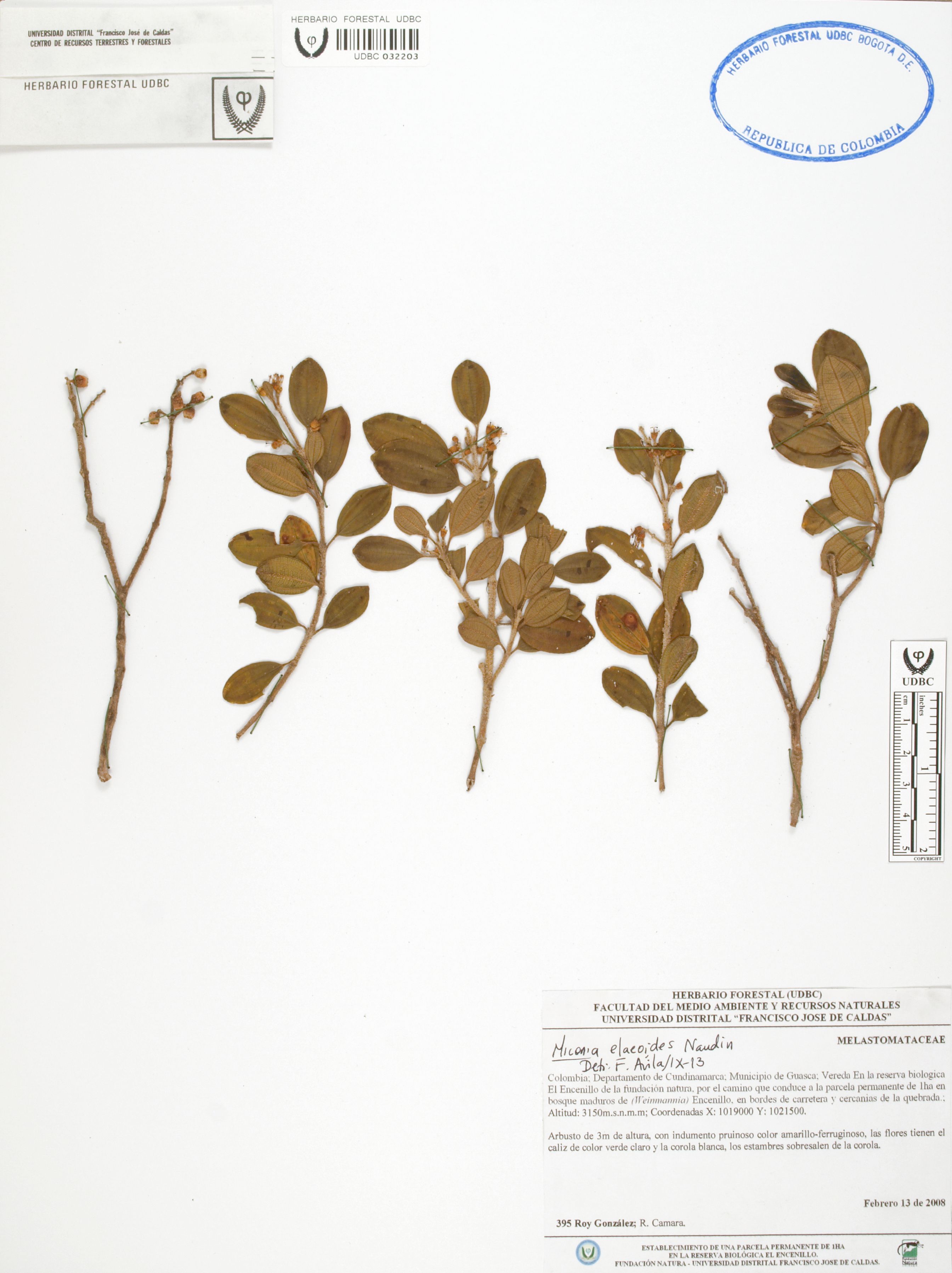 Fotografía del ejemplar González, R. 395, determinado como Miconia elaeoides en el año 2013