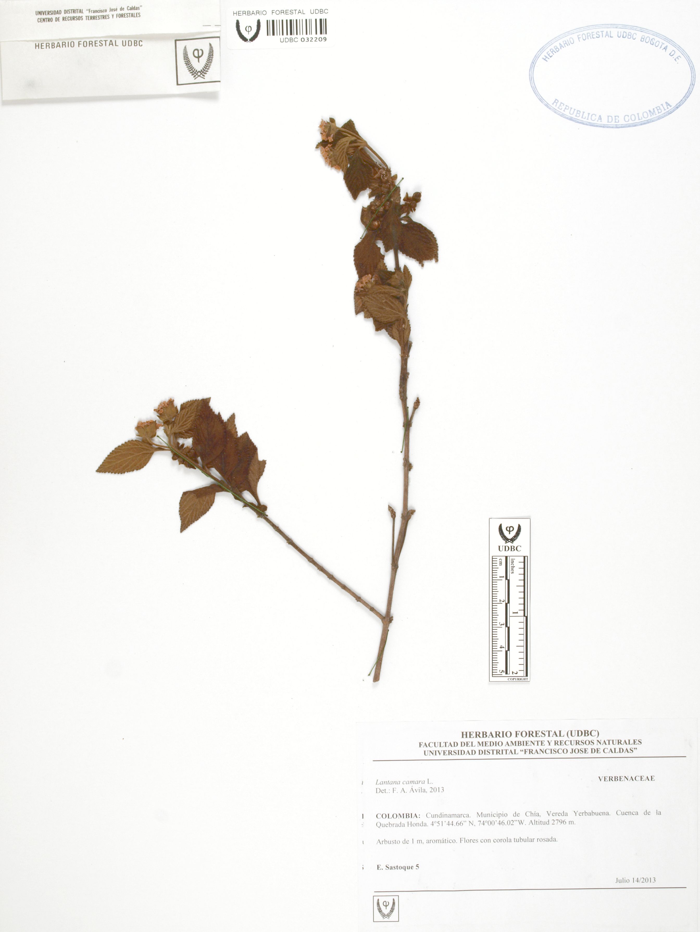 | dc.description | Fotografía del ejemplar Sastoque, E. 5, determinado como Lantana camara en el año 2013 | |