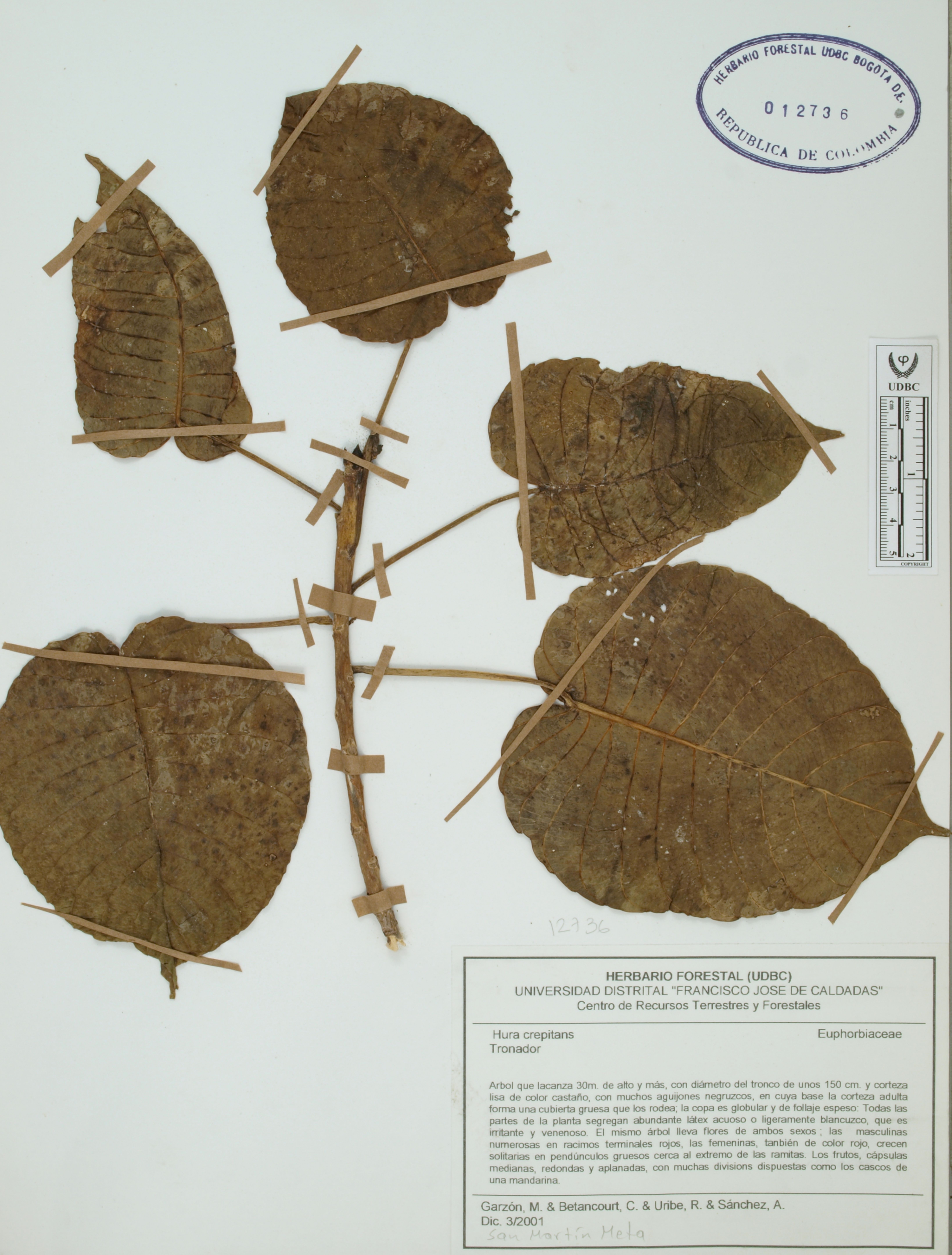 Fotografía del ejemplar Garzón, M., determinado como Hura crepitans