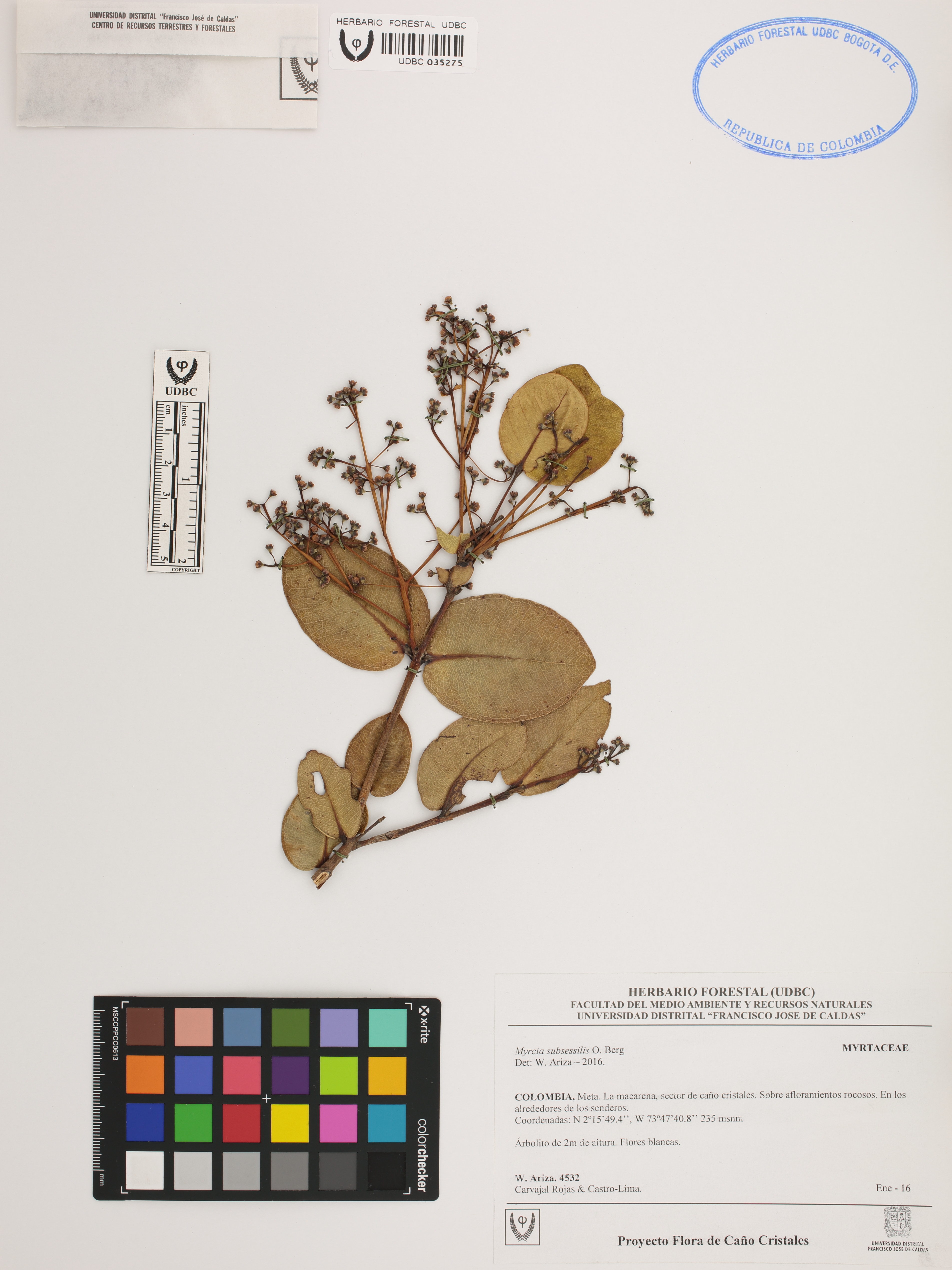 | dc.description | Fotografía del ejemplar Ariza, W. 4532, determinado como Myrcia subsessilis en el año 2016 | |