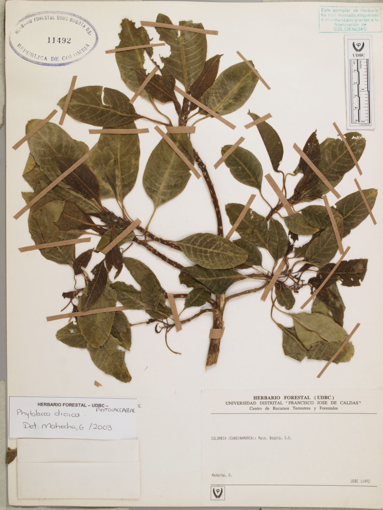 | dc.description | Fotografía del ejemplar Mahecha, G., determinado como Phytolacca dioica en el año 2003 | |