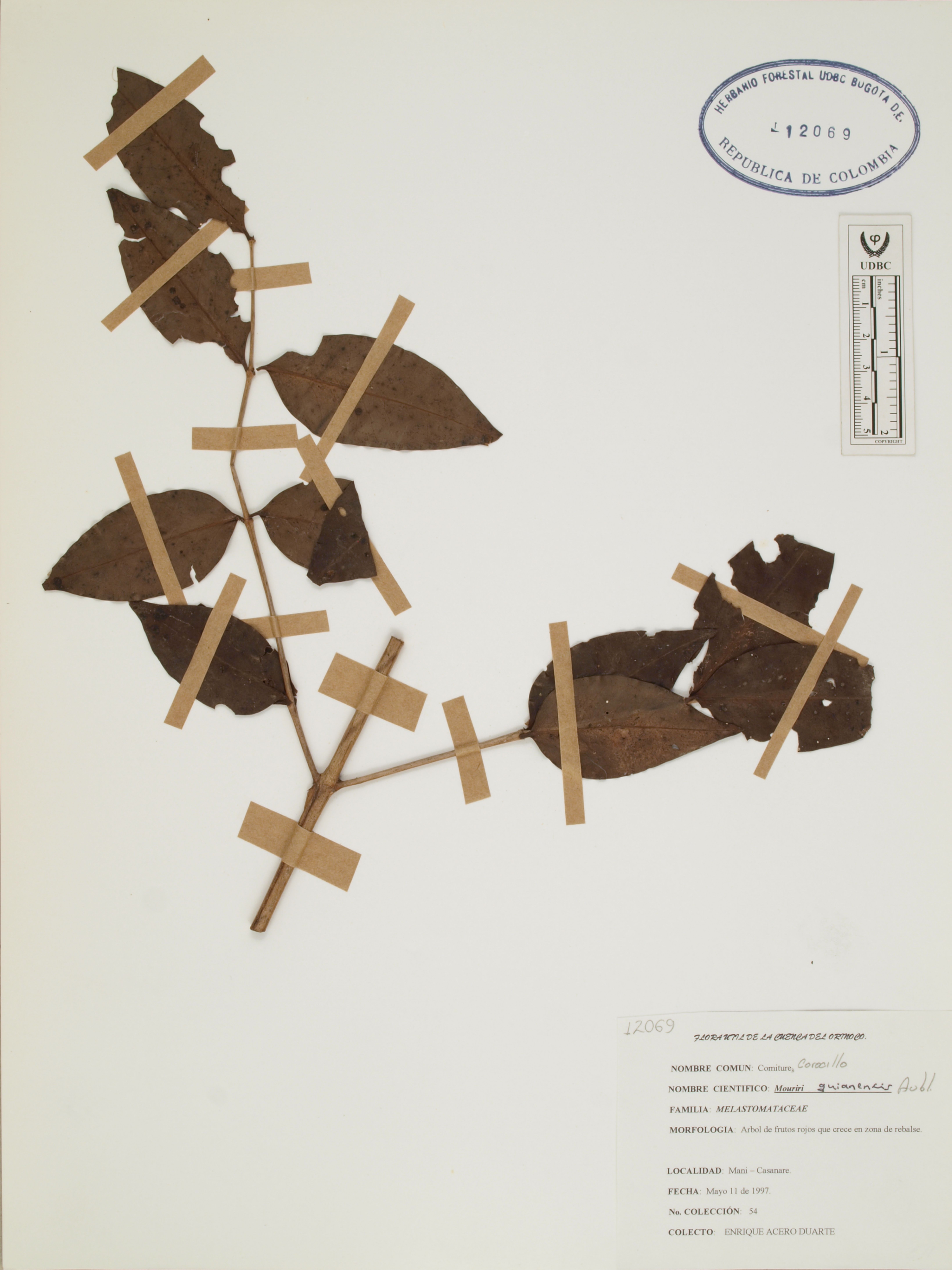 Fotografía del ejemplar Acero, E. 54, determinado como Mouriri guianensis