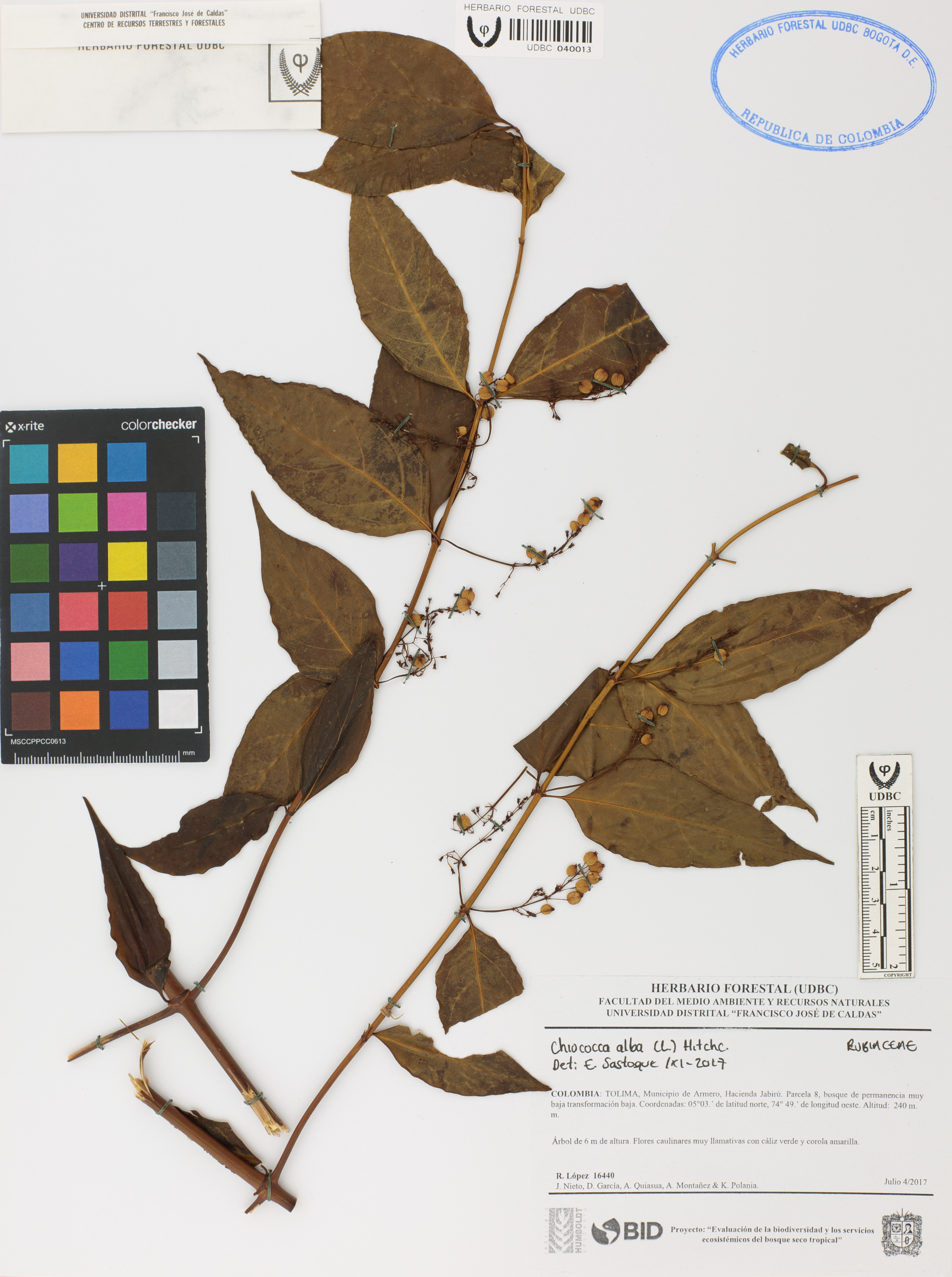 Fotografía del ejemplar López, R. 16440, determinado como Chiococca alba en el año 2017