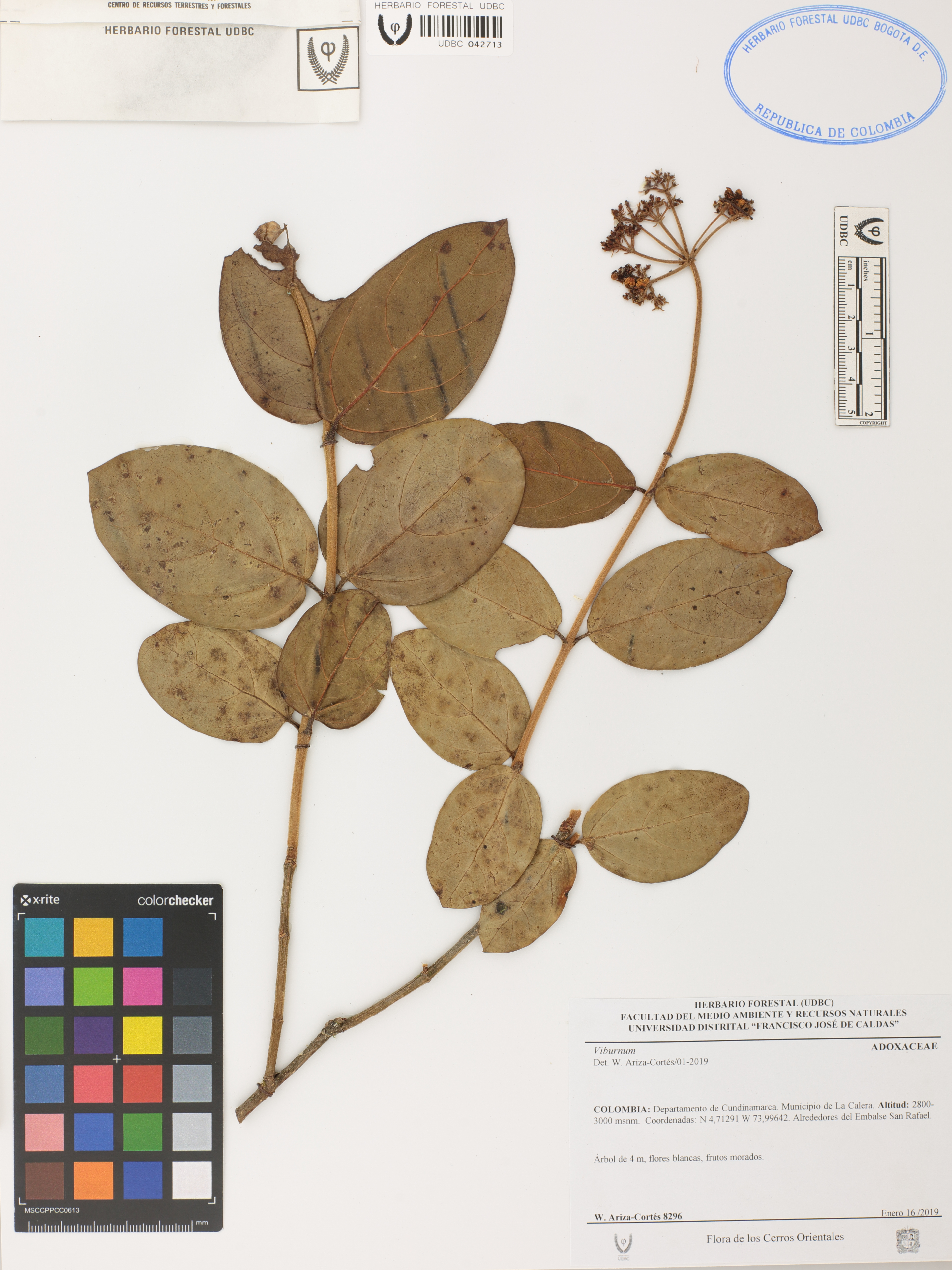 Fotografía del ejemplar Ariza-C., W. 8296, determinado como Viburnum sp. en el año 2019