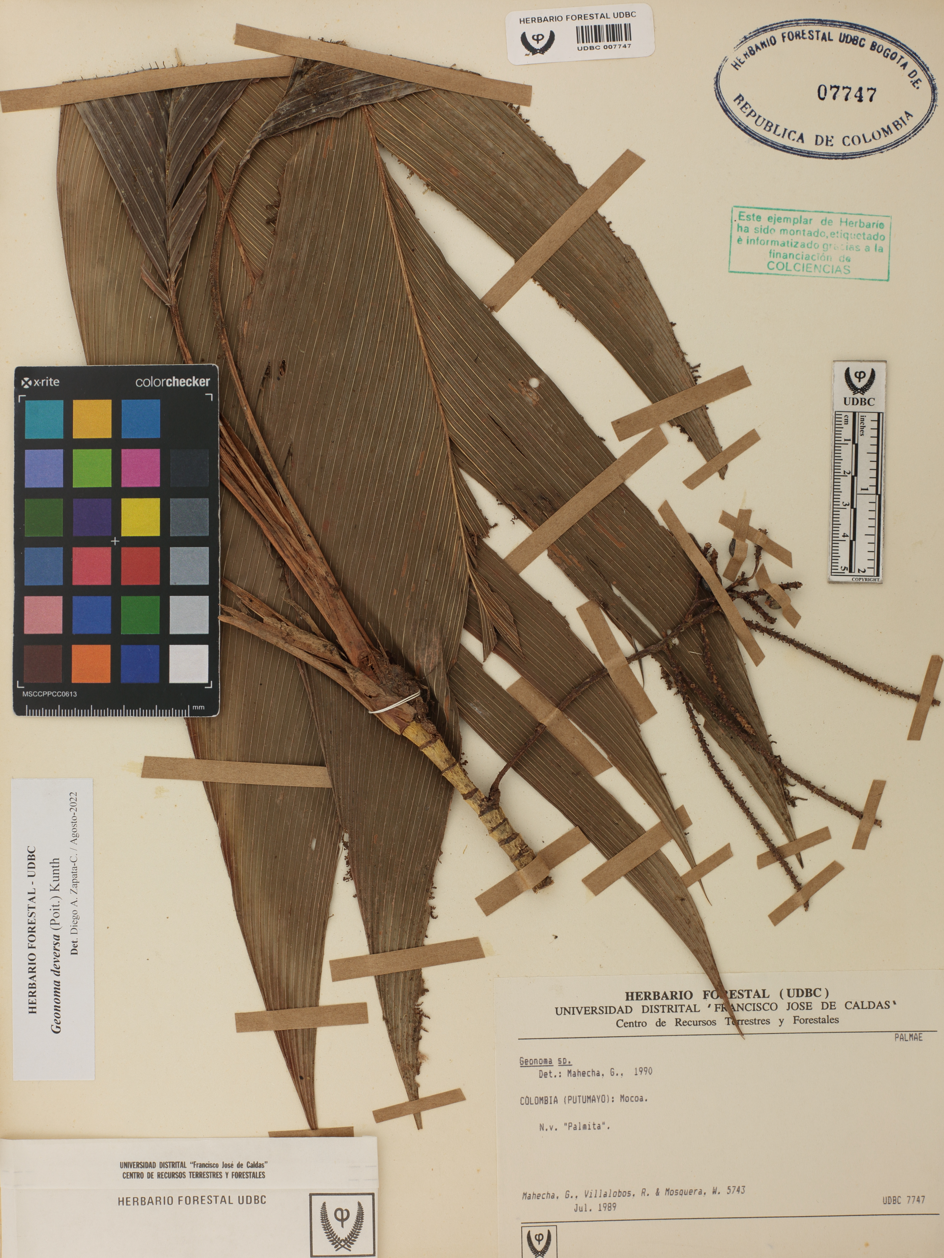 | dc.description | Fotografía del ejemplar Mahecha, G. 5743, determinado como Geonoma deversa en el año 2022 | |