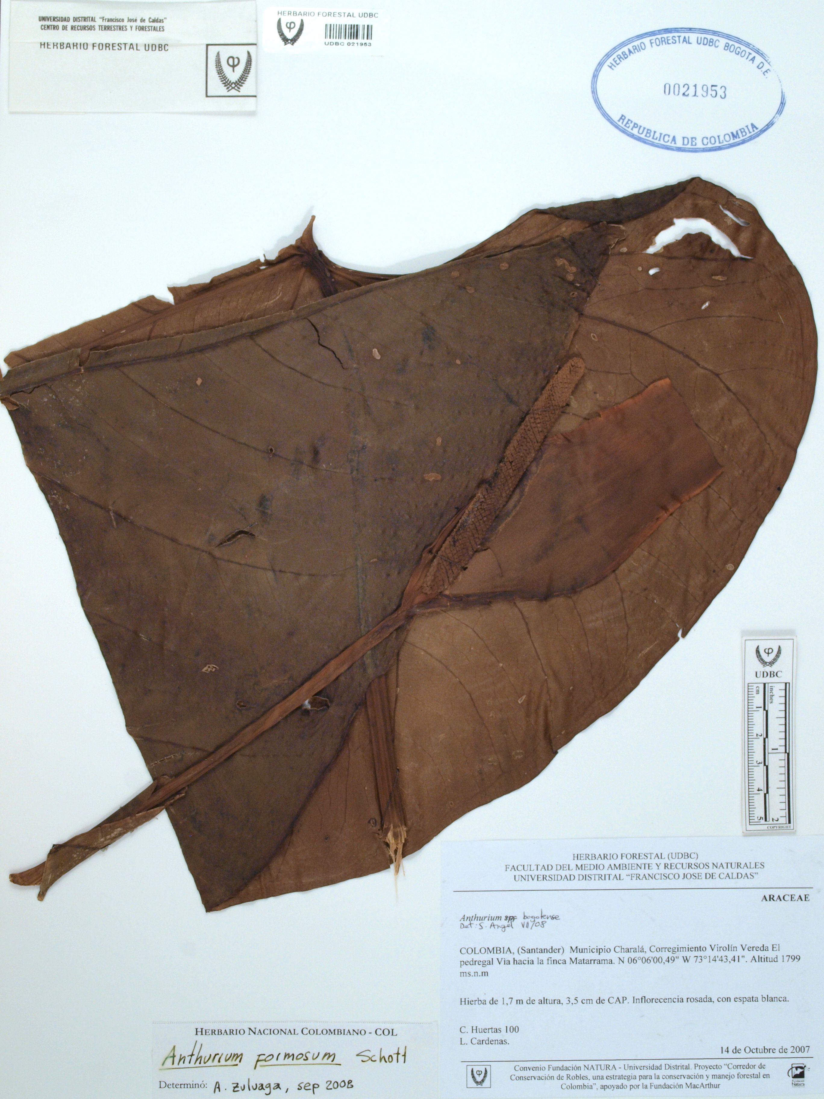| dc.description | Fotografía del ejemplar Huertas, C. 100, determinado como Anthurium formosum en el año 2008 | |