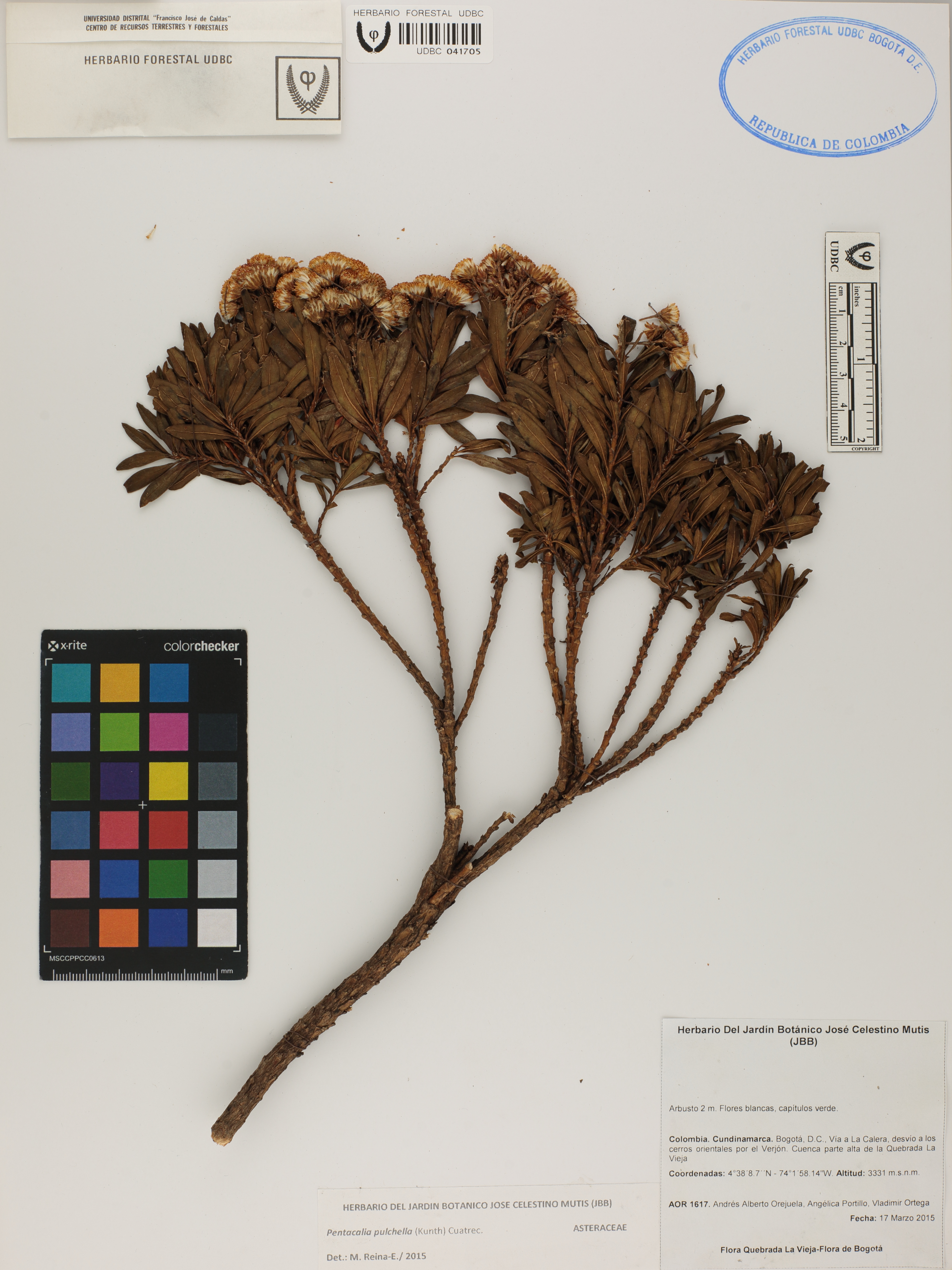 Fotografía del ejemplar Orejuela, A. 1617, determinado como Pentacalia pulchella en el año 2015