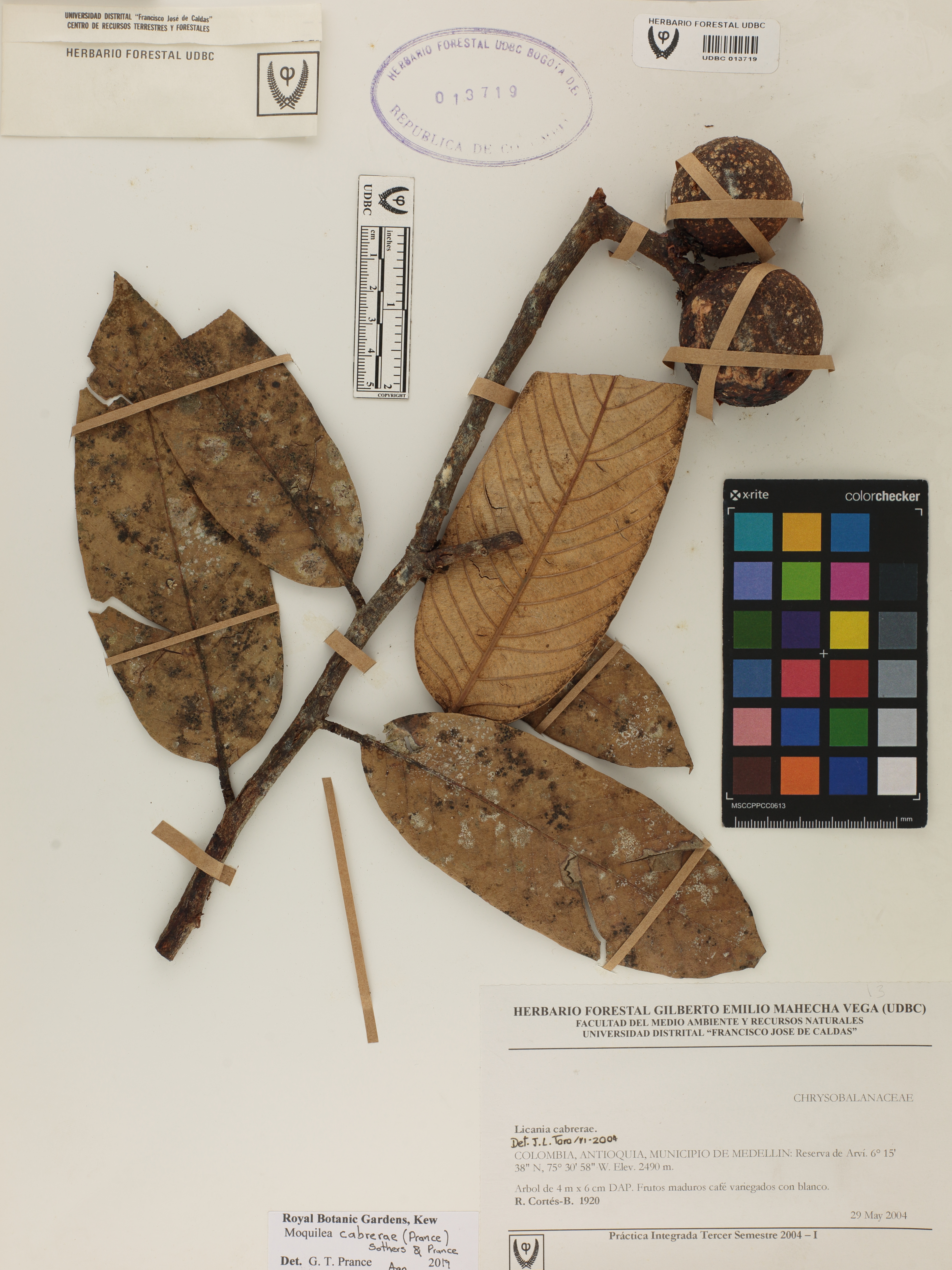 Fotografía del ejemplar Cortés-B., R. 1920, determinado como Moquilea cabrerae en el año 2019